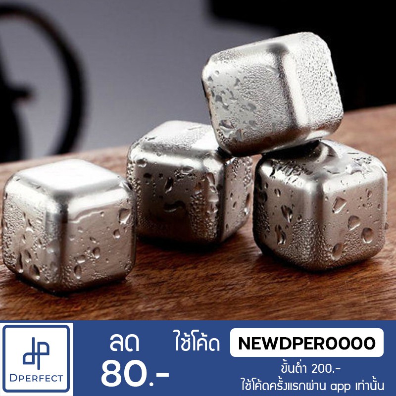 น้ำแข็งสแตนเลส (ชุดละ 4 ก้อน) ICE CUBE ไม่มีวันละลาย ไม่เสียรสชาติการดื่ม