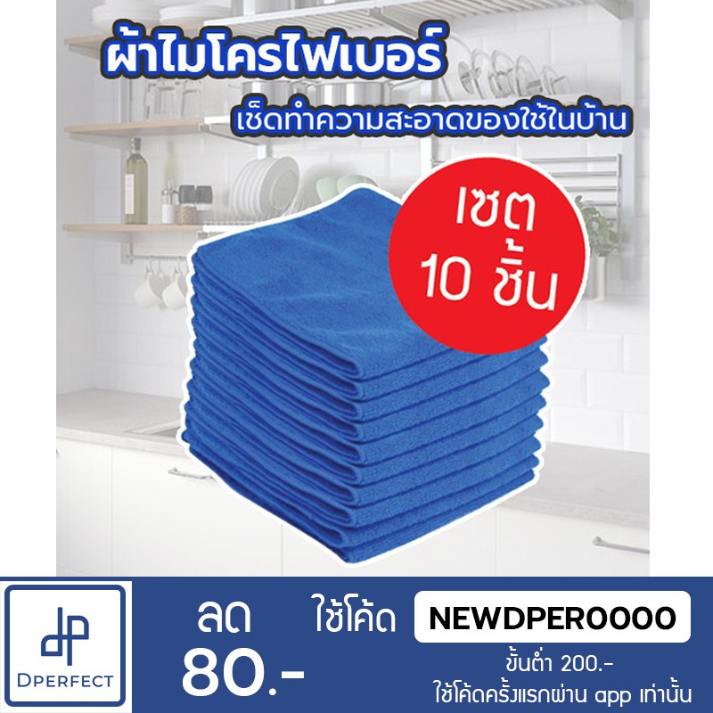 ผ้าไมโครไฟเบอร์ [คุ้มกว่าเดิม! เซต 10 ชิ้น] แบบบาง เนื้อผ้านุ่ม ขนาด 30x30(สีน้ำเงิน)