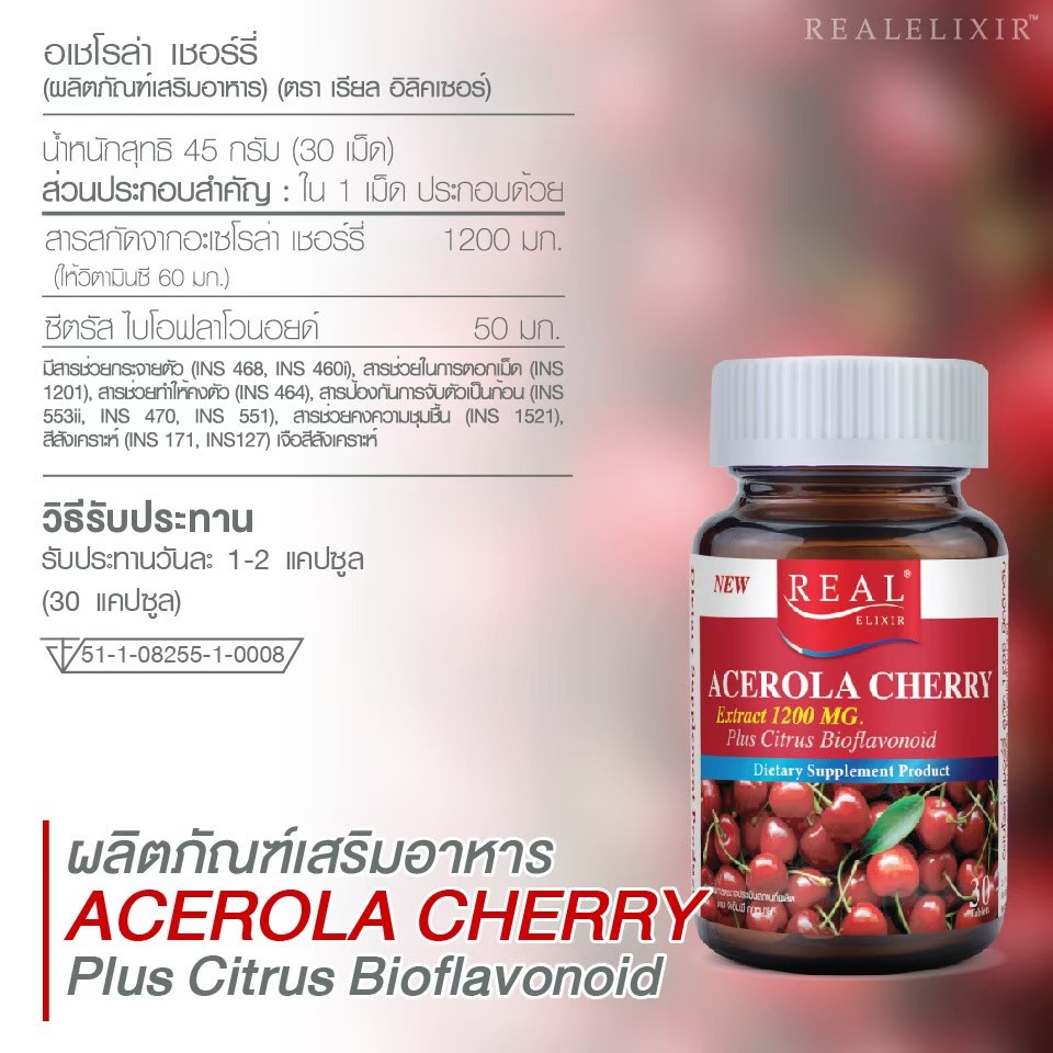 Real Elixir Acerola cherry 1,200 mg. อะเซโรล่า เชอร์รี่ 1200 mg. (30 เม็ด)