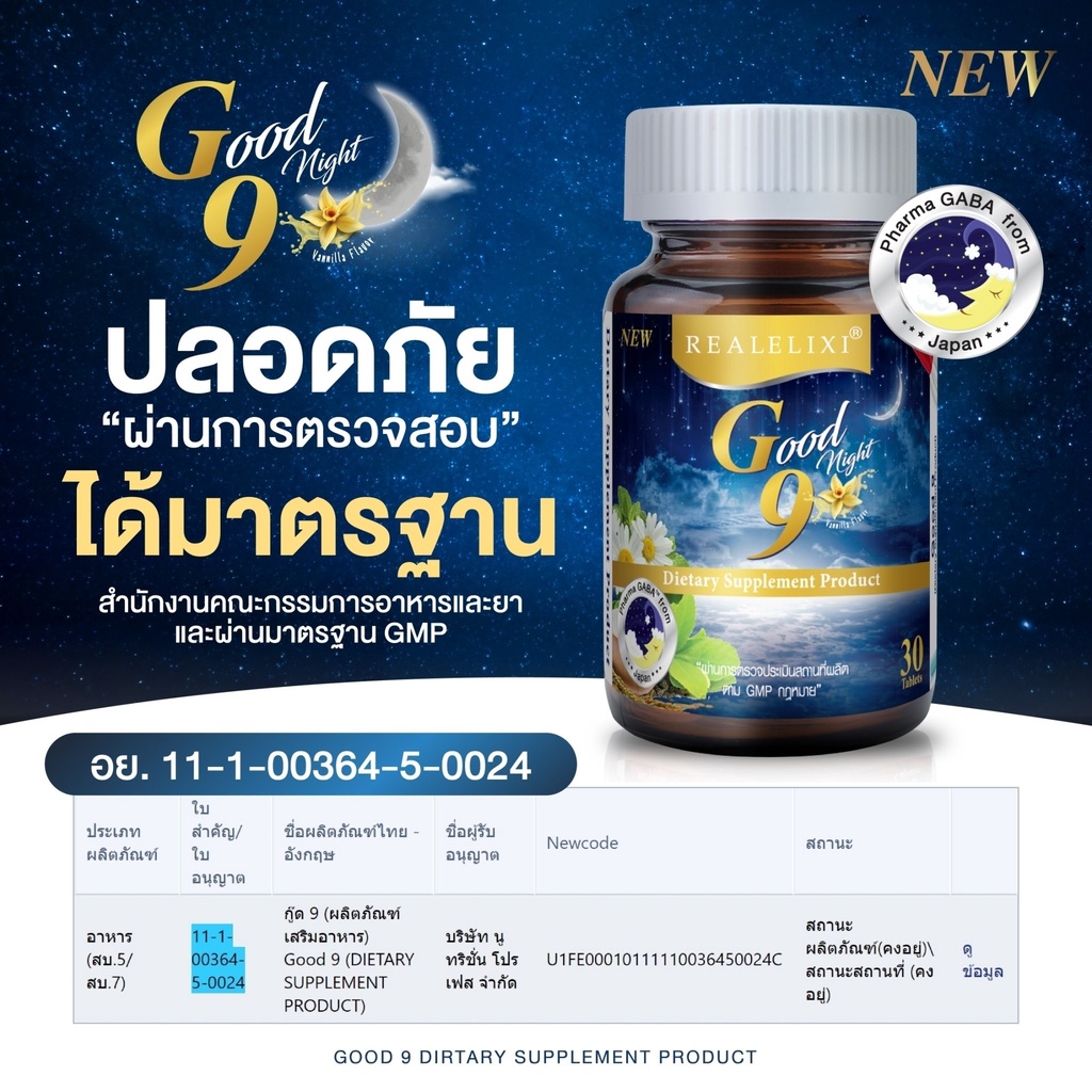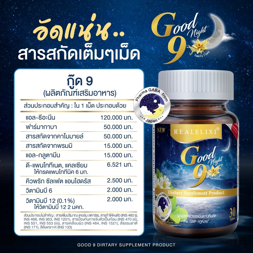 Real Elixir Good9 (Good night) บรรจุ 30 เม็ด โปร 3 ขวดสุดคุ้ม
