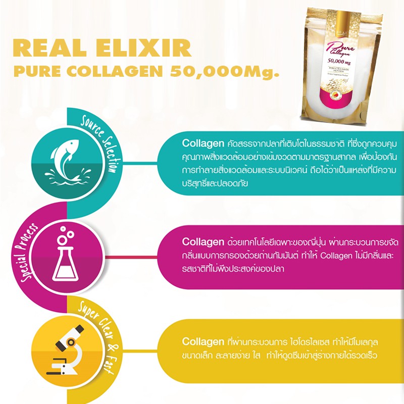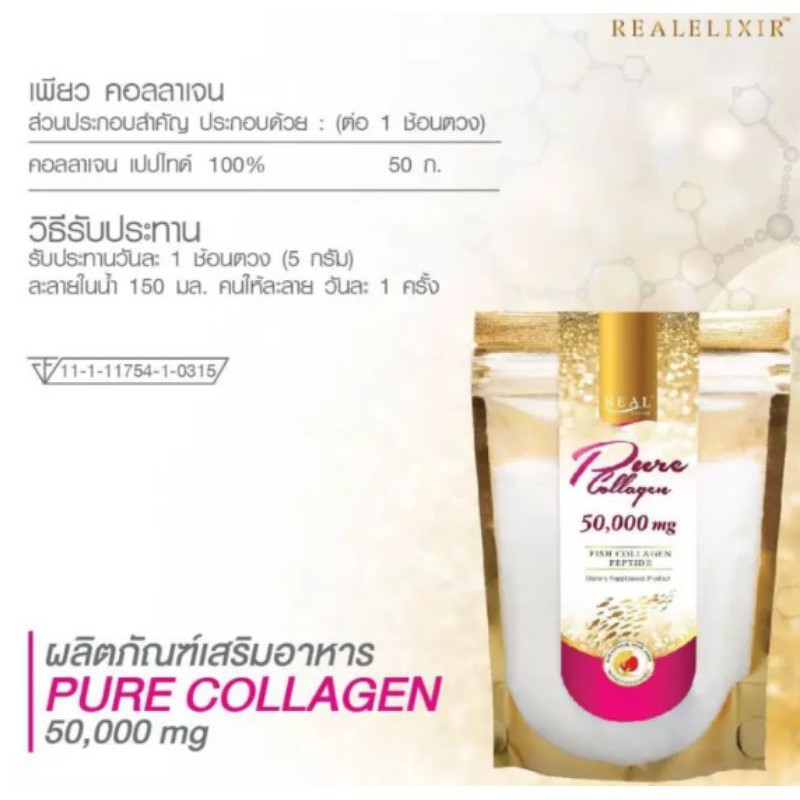 Real Elixir เพียวคอลลาเจน 50,000มก. (ถุงฉลากสีชมพู ถุงซิป แบบรีฟิล)