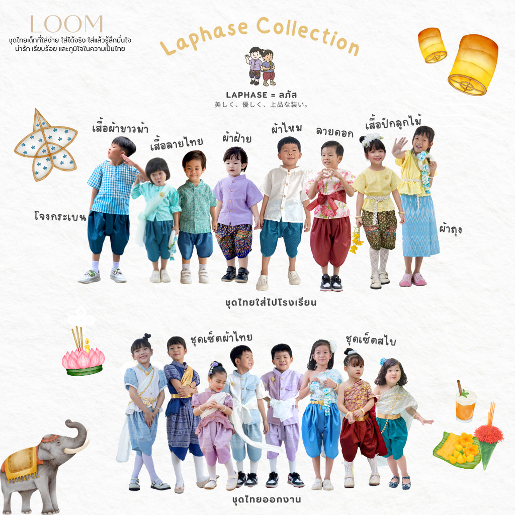 เสื้อไหมชุดไทยเด็ก รุ่น แก้วกล้า น้อง 2-6 ขวบ ❤️🎈 เสื้อราชปะแตน ชุดไทยเด็กอนุบาล ชุดไทยเด็ก LOOM