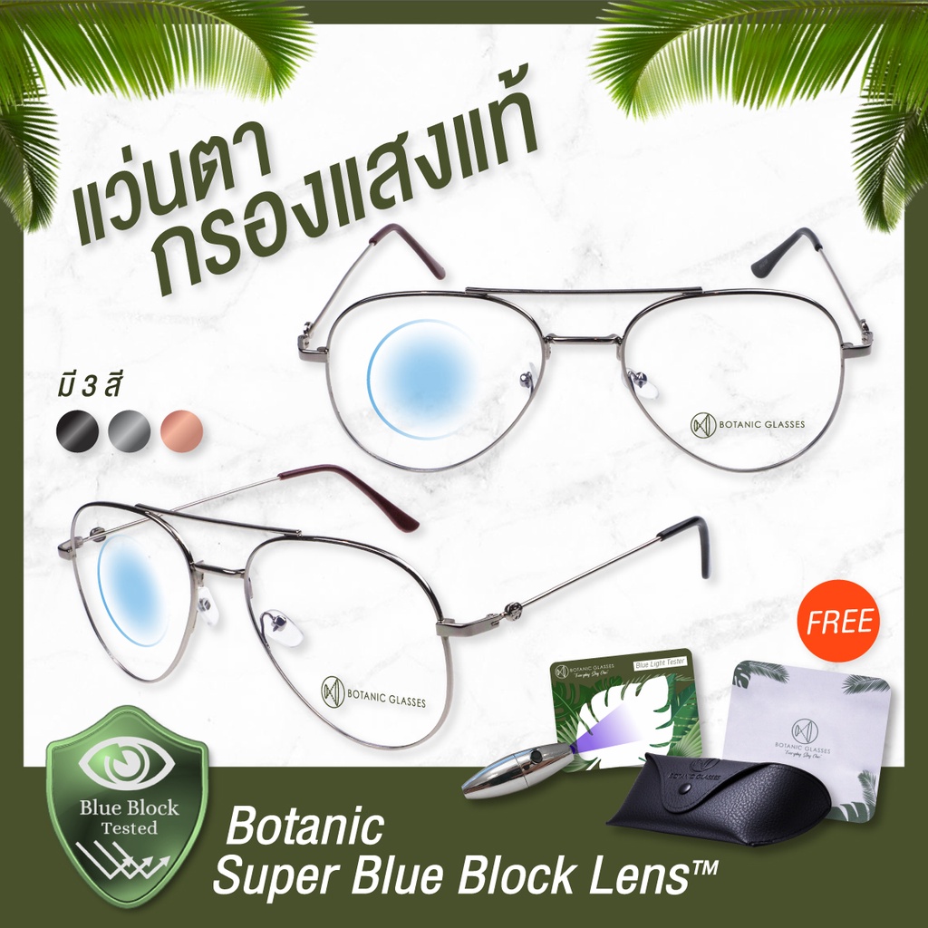 Botanic Glasses แว่นตา เลนส์กรองแสง กรองแสงสีฟ้า aviator สูงสุด95% กันแสง UV99% แว่นตา กรองแสง Super Blue Block