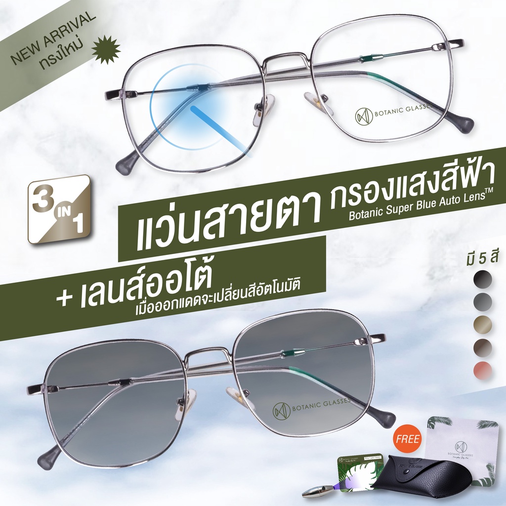 แว่นส ายตาสั้น เลนส์ออโต้+กรองแสงสีฟ้า 3in1 รุ่นท๊อป ออกแดดเปลี่ยนสี ทรงเหลี่ยม SuperAutoBlue [แจ้งสีกรอบแว่นในแชท]
