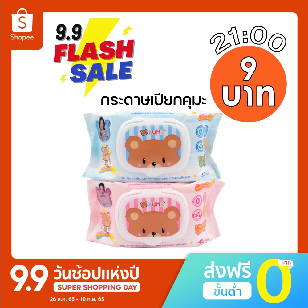[ห่อละ8บาท/กดได้3ห่อ🔥]((1ห่อ)ทิชชู่เปียกคุมะ40แผ่น💛 คละสี (Flash Sale Slot)