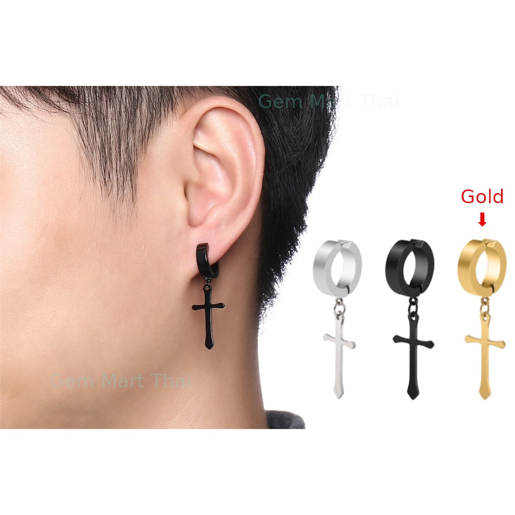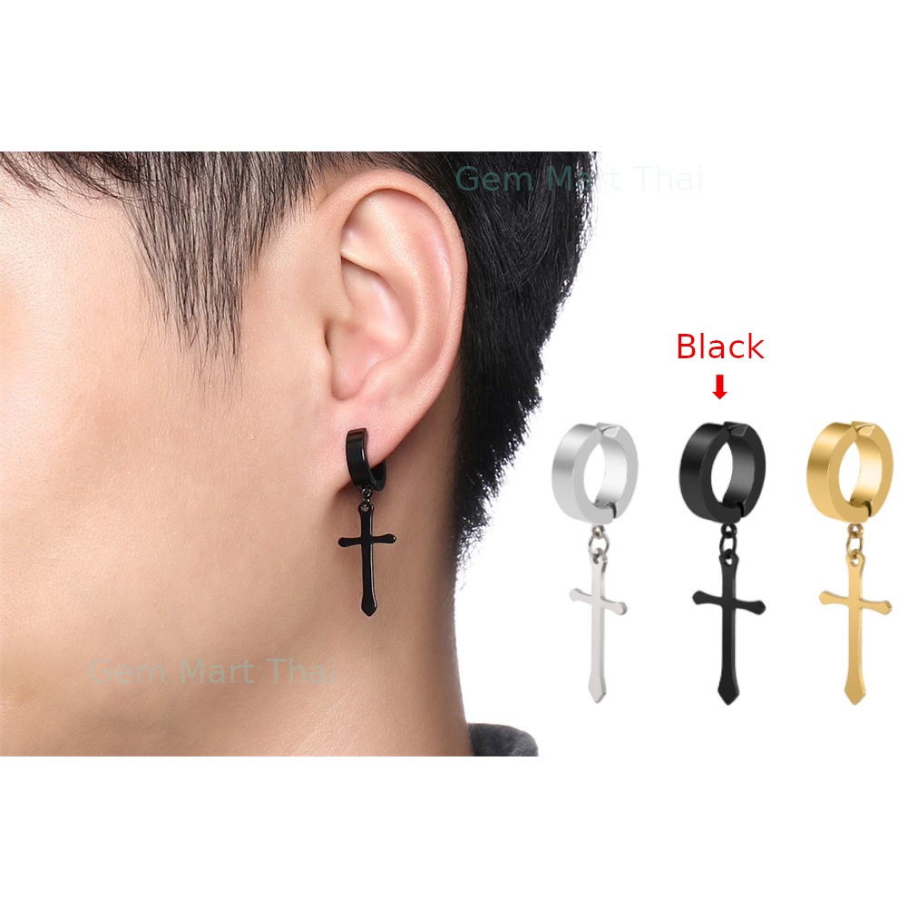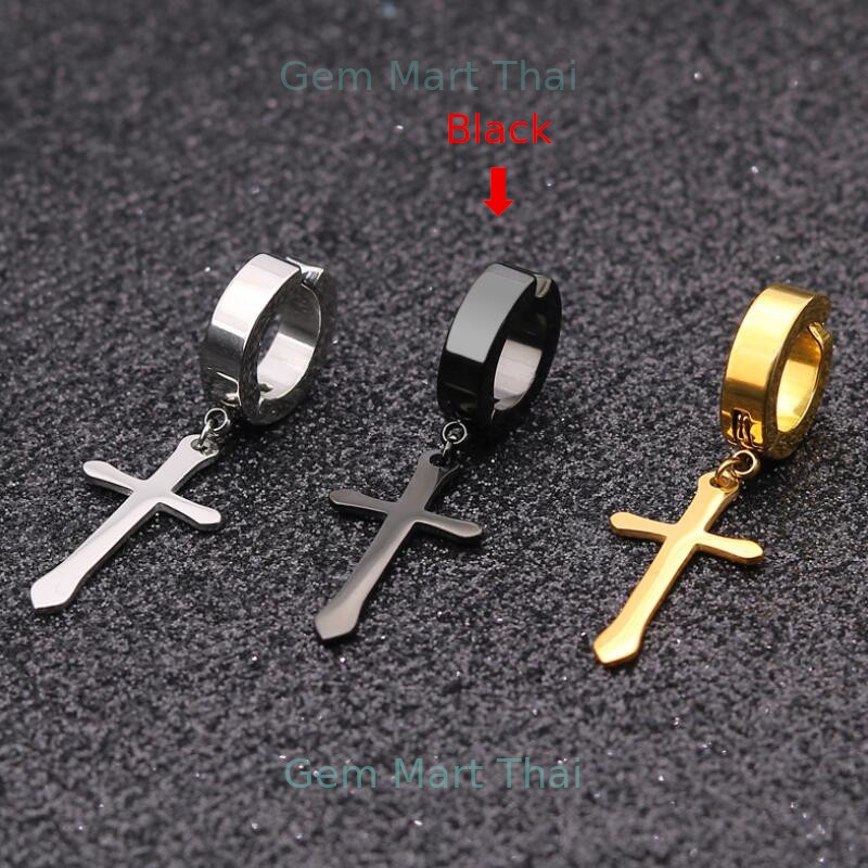 ต่างหู ไม่ต้องเจาะหู ตุ้มหู จิว ไม้กางเขน | N-H. CROSS| Cross Huggie Stud Earrings Men Stainless Steel Jewelry- 1 ชิ้น