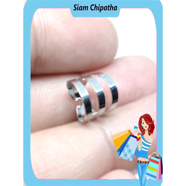 ต่างหู ไม่ต้องเจาะหู ตุ้มหู จิว | CLP.3F | Punk Rock Ear Clip Cuff Wrap Earrings No piercing Flat 3 layer - 1 ข้าง