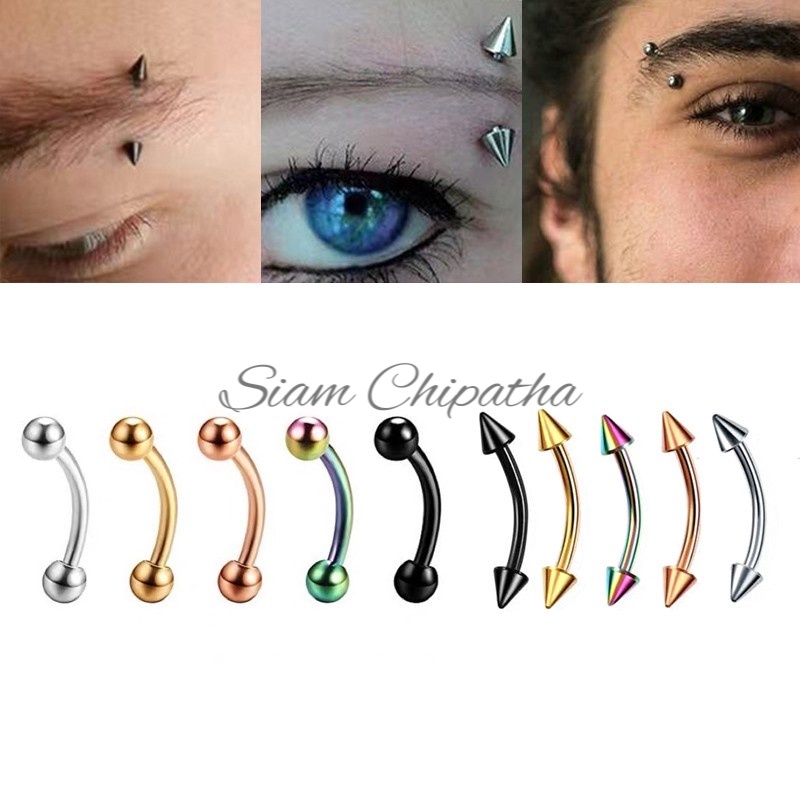 ✪จิวคิ้วสแตนเลส จิวหูสแตนเลส จิวบาร์เบลโค้ง ✪ EBR ✪ Real Stainless steel Jewelry Stud for Eyebrow Men Women - 1 Piece