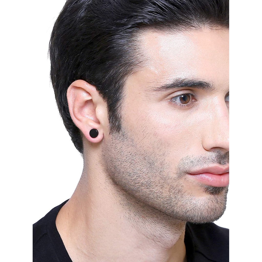 ต่างหู ตุ้มหู จิว ต่างหูผู้ชาย Black Gothic Barbell Earring Fashion Round Plain Men Stud Earring Jewelry - 1 ข้าง