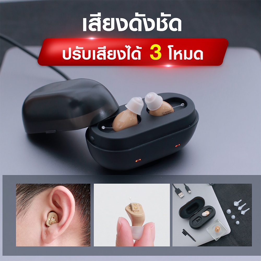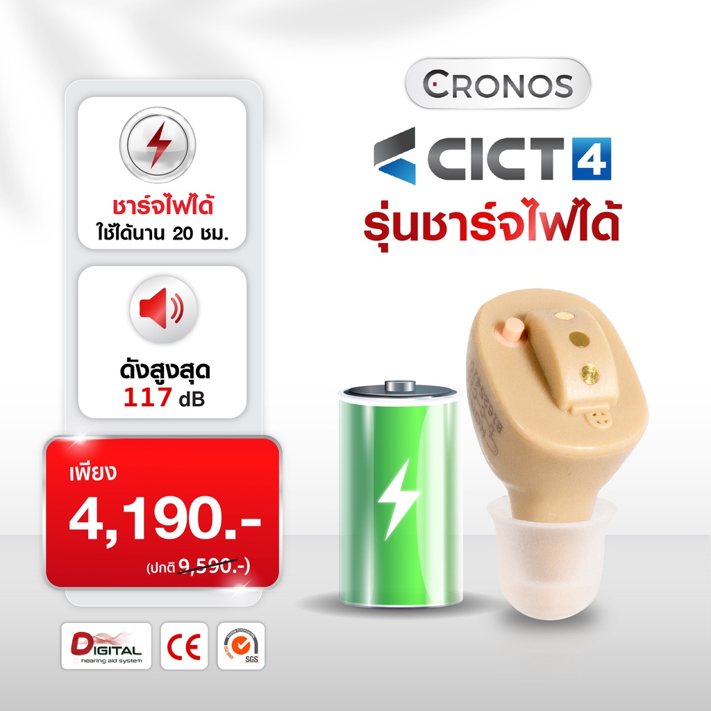 เครื่ องช่วยฟัง ดิจิตอล ชาร์จไฟ CRONOS รุ่น CICT4 เครื่องช่วยฟังขยายเสียง ลดเสียงรบกวน เครื่องช่วยฟังมองไม่เห็น