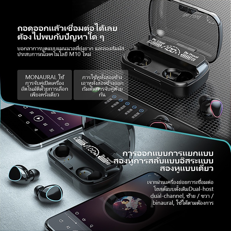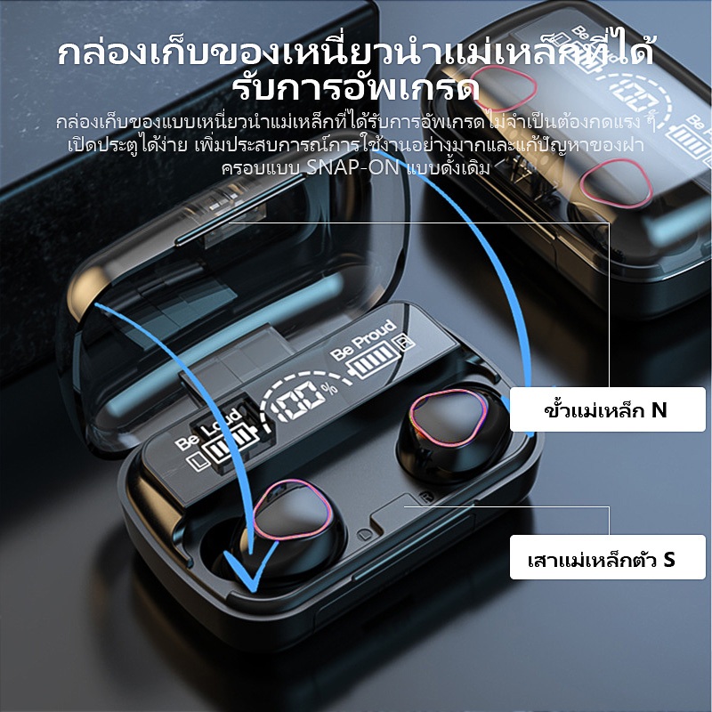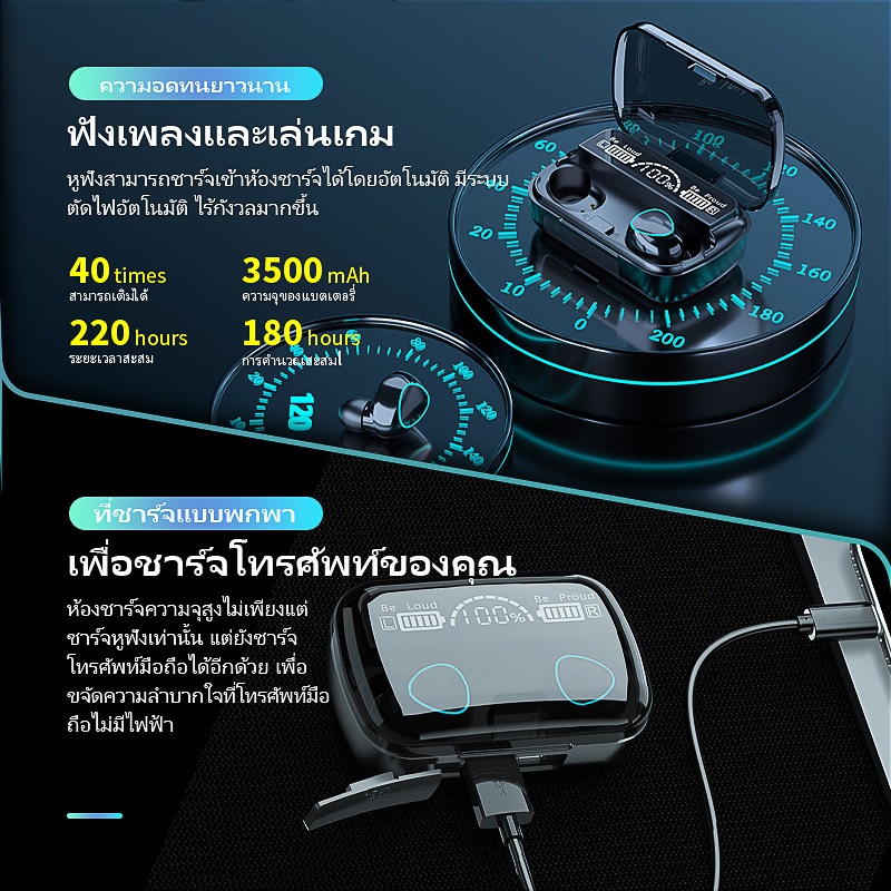 M10 TWS หูฟังบลูทูธไร้สาย บลูทูธ 5.3 สเตอริโอ 9D กันน้ํา พร้อมไมโครโฟน จอแสดงผลไฟ LED แบตเตอรี่ ความจุสูง พร้อมเคสชาร์จ