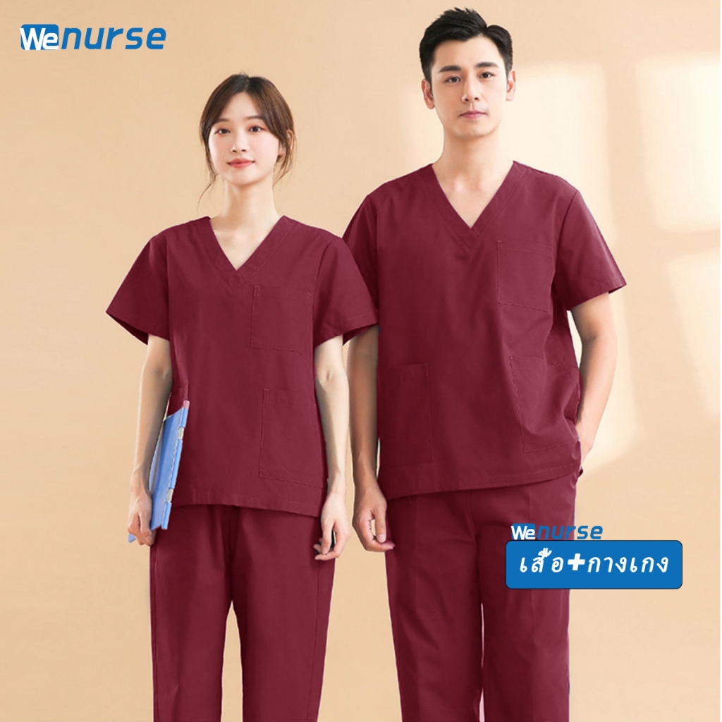🔥🇹🇭 จัดส่งจากกรุงเทพฯ🔥 ชุดสครับ ชุดห้องผ่าตัด ชุดแพทย์ ชุดพยาบาล ชุดเข้าเวร เสื้อคอวี(เสื้อ+กางเกง)