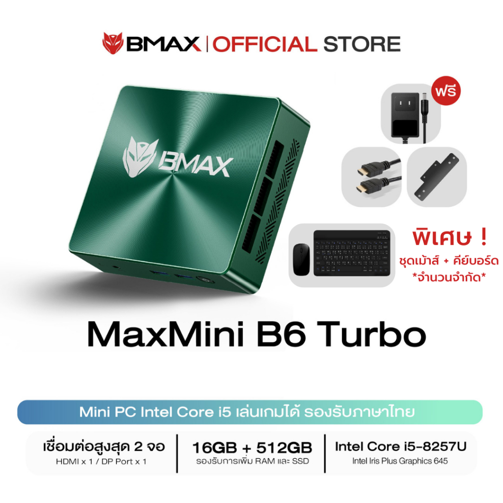 (แถมฟรีชุดเม้าส์ + คีย์บอร์ด) BMAX B6 Turbo Mini PC Intel Core i5-8257U RAM 16GB DDR4 / SSD 512GB Windows 11 ประกัน 1ปี
