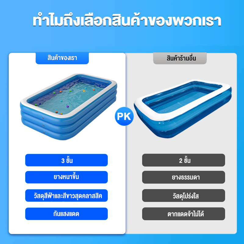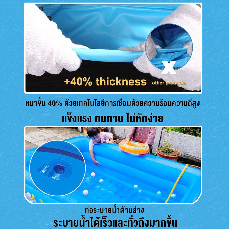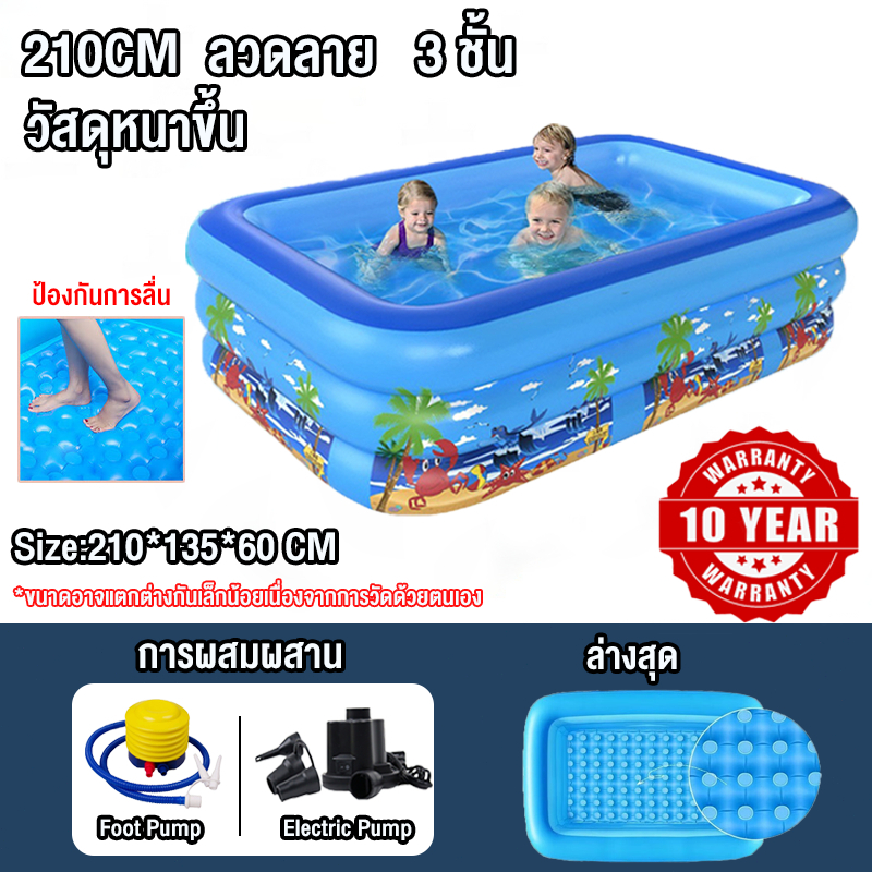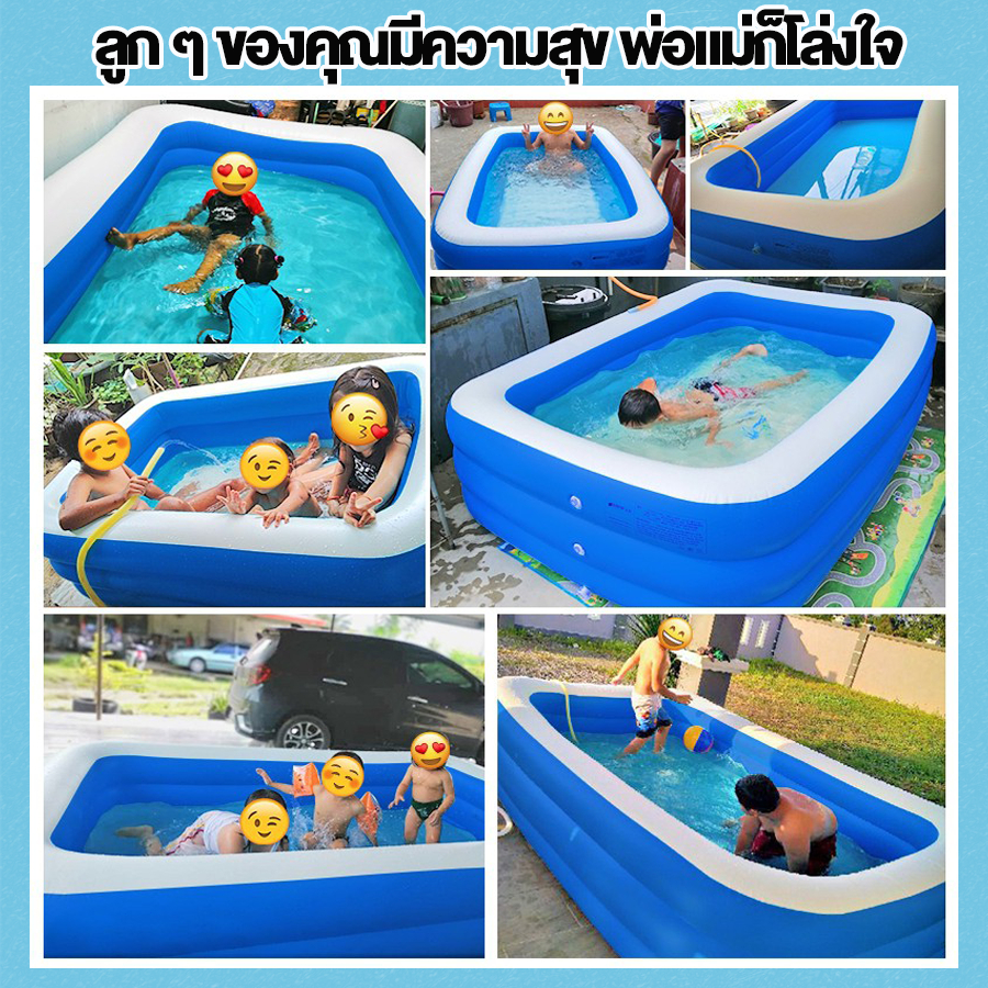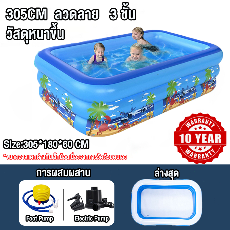 สระน้ำเป่าลม สระน้ําเด็ก 3เมตร 3 ชั้น สระน้ํายาง สระว่ายน้ำขนาดใหญ่ สระน้ำเป่าลมครอบครัว สระน้ำแบบพกพา ยาวพิเศษ 305 ซม