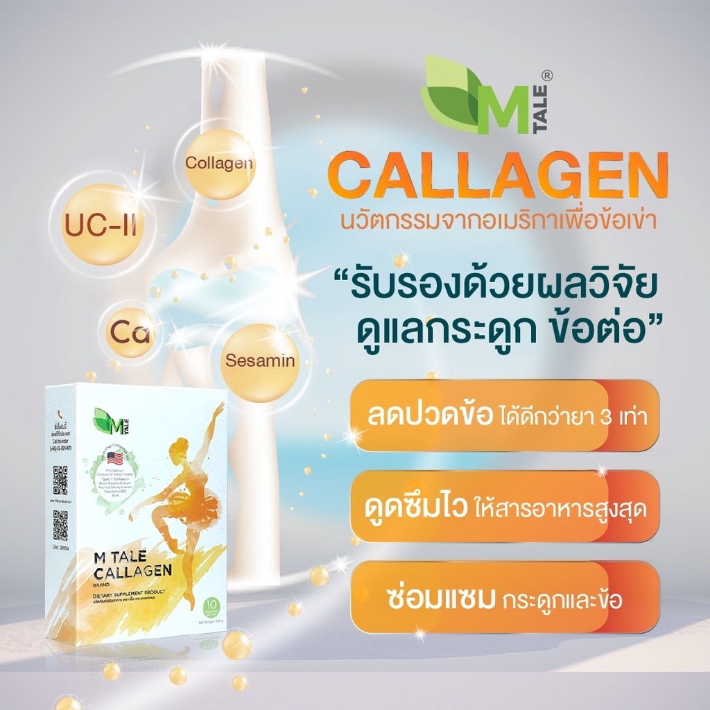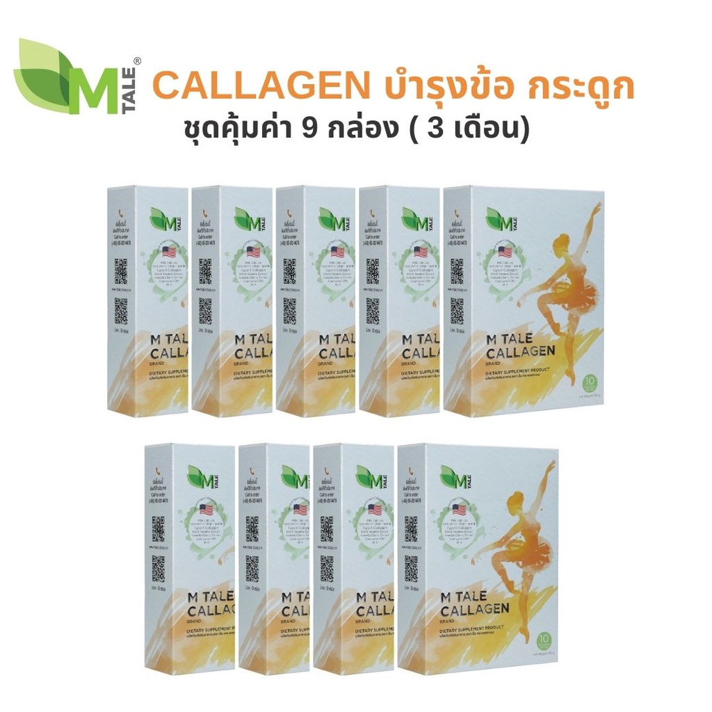 M TALE CALLAGEN คอลลาเจนผสมแคลเซียม บำรุงกระดูก ข้อ ผิวพรรณให้แข็งแรง ลดอาการปวดข้อ (แพค 9 กล่อง)