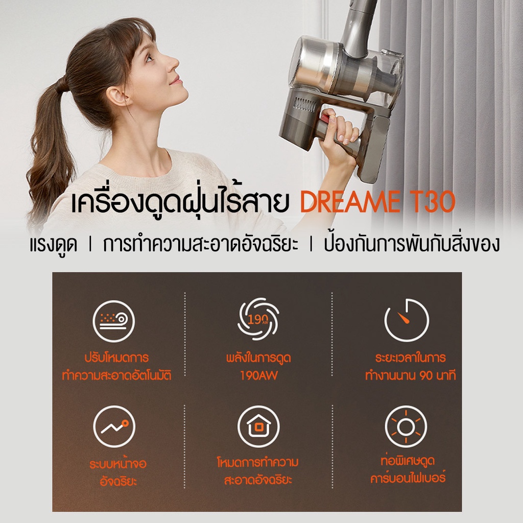 Dreame T30 Handheld Wireless Vacuum Cleaner เครื่องดูดฝุ่นไร้สาย แบบชาร์จไฟ