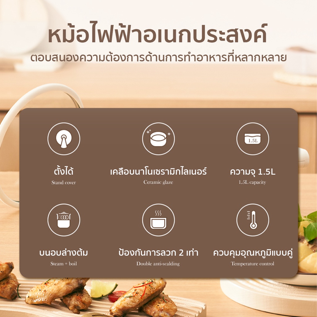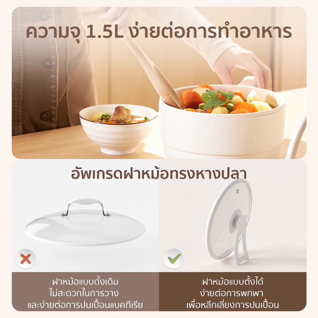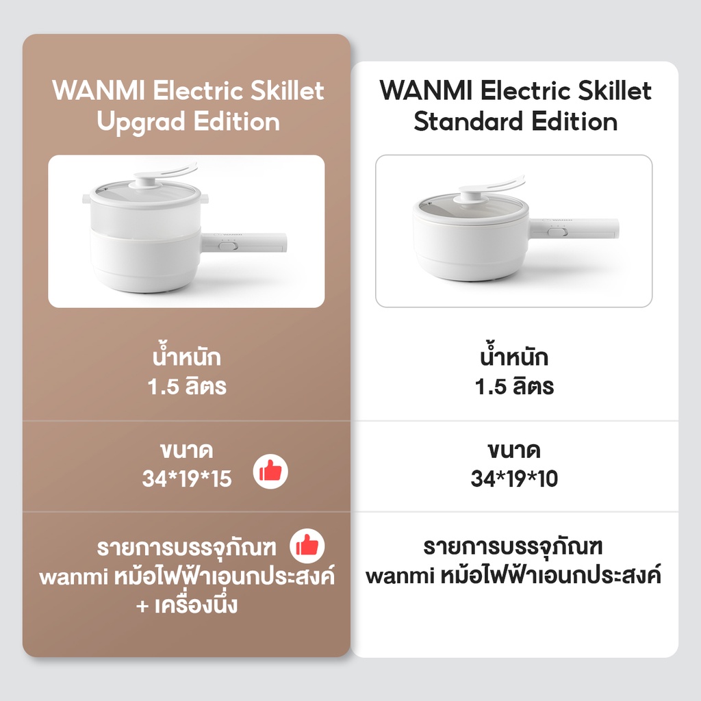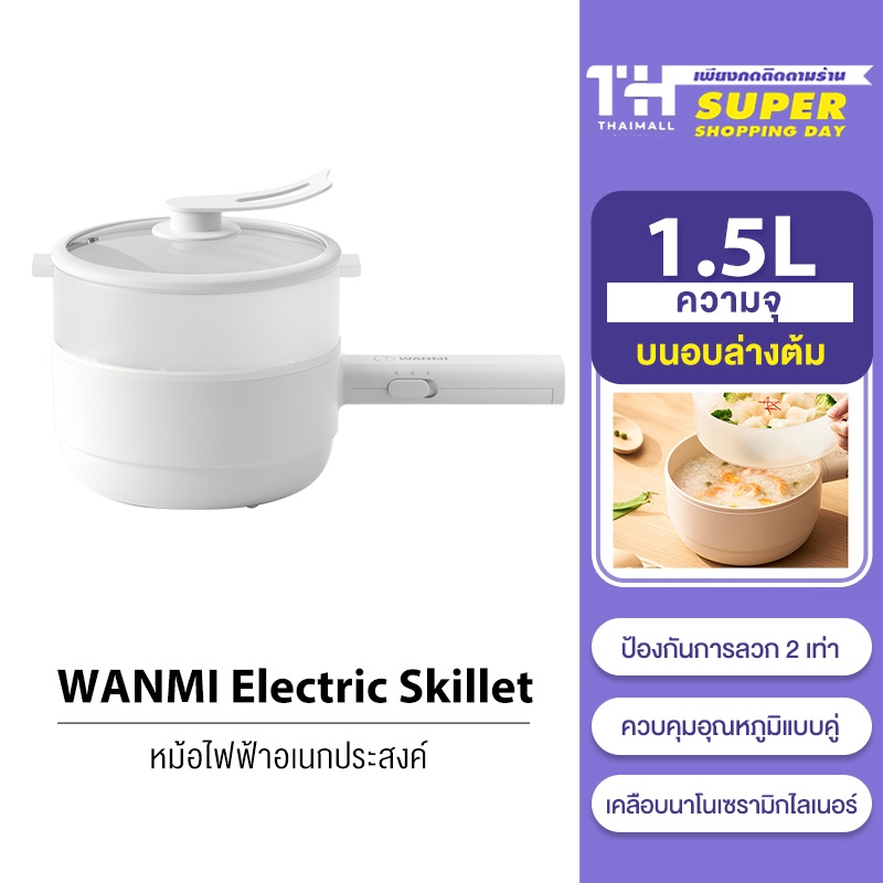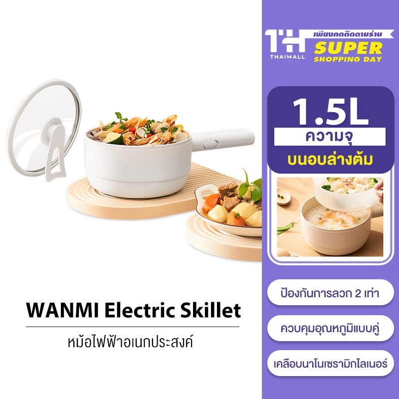 Xiaomi WANMI Electric Skillet 1.5L หม้อไฟฟ้า กระทะไฟฟ้า หม้อสุกี้ไฟฟ้า ป้องกัน หม้อไฟฟ้า