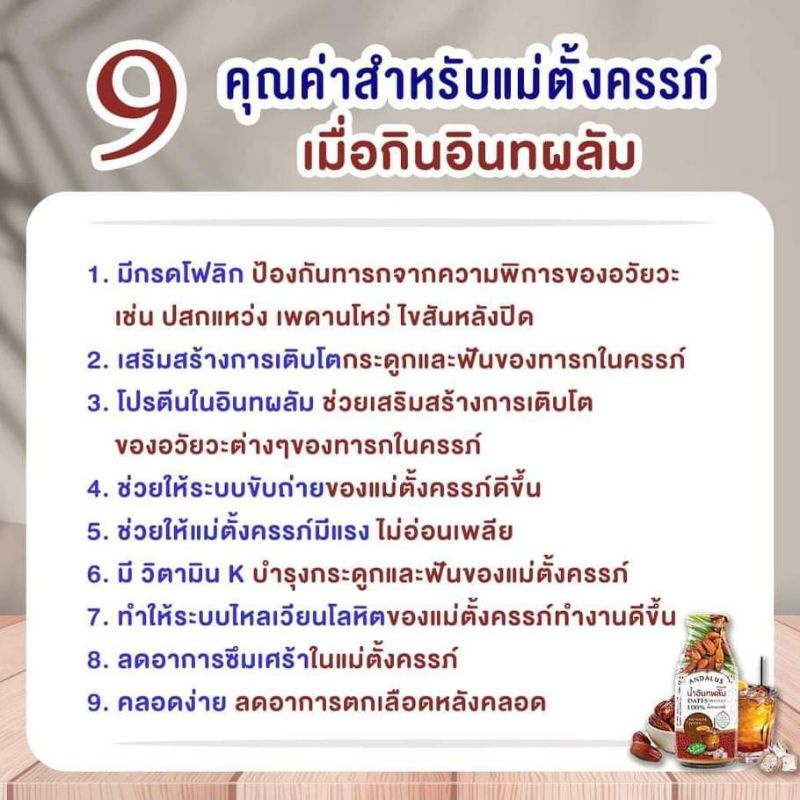 น้ำอินทผาลัม อันดาลุส น้ำอินทผาลัม เพิ่มน้ำนม บำรุงครรภ์ 250 ml- Andalus Dates Juice 100%