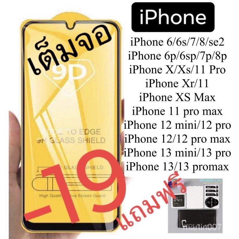 ฟิล์มกระจก iPhone 9Dแบบเต็มจอ ฟิล์มกันรอยของแท้ สีดำ สีขาว iPhone 6 7 8 plus x xr xs max 11 pro max 12 13 pro max mini aaz6