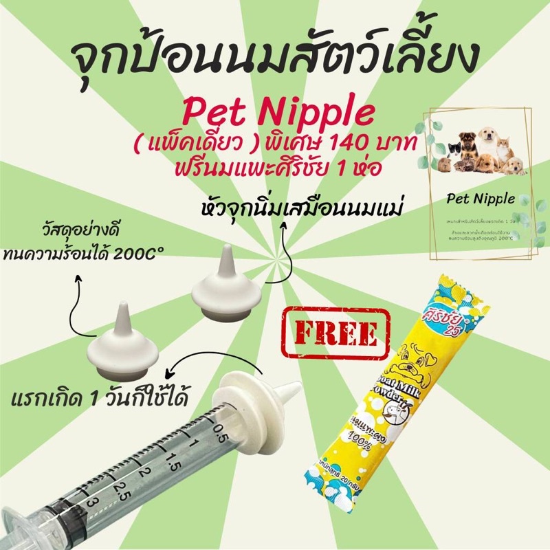 Pet Nipple จุกนมแมว & สัตว์แรกเกิด 1ชิ้น พร้อมนมแพะ ศิริชัยจุกนมกระรอก กระต่ายหมา แมว
