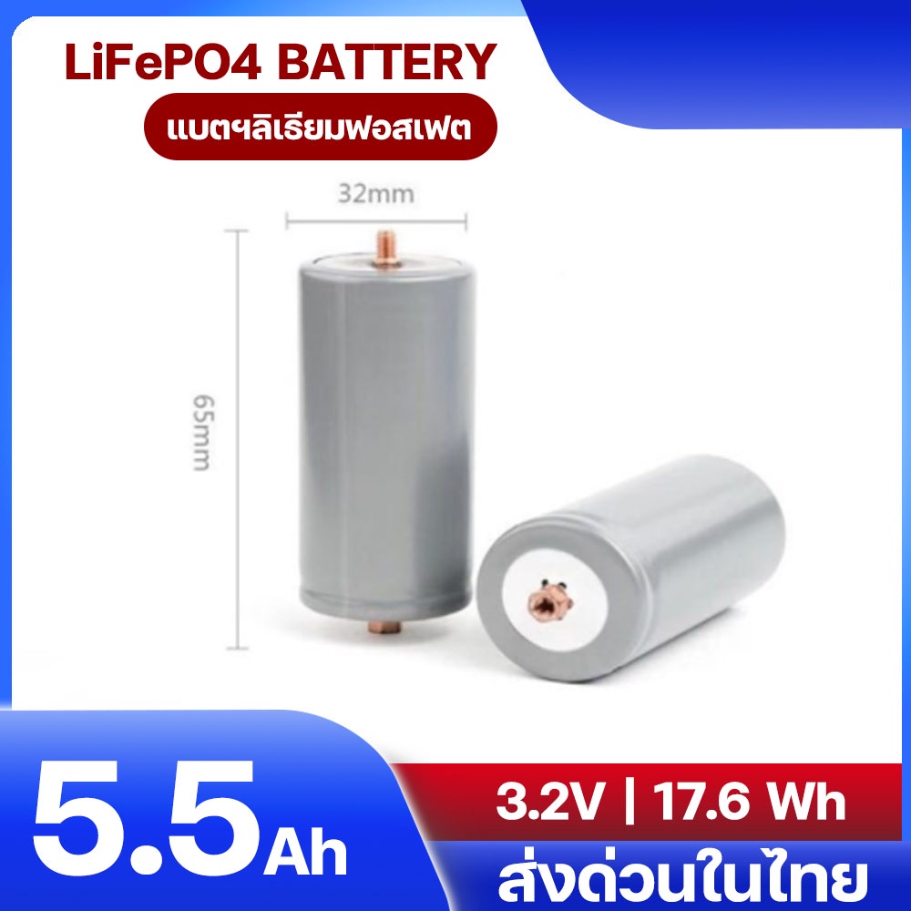 แบตเตอรี่ ลิเธียมฟอสเฟต LiFePO4 32650 3.2V กระแส 5500 mAh แบบเกลียว Lithium Phosphate ประกอบ DIY