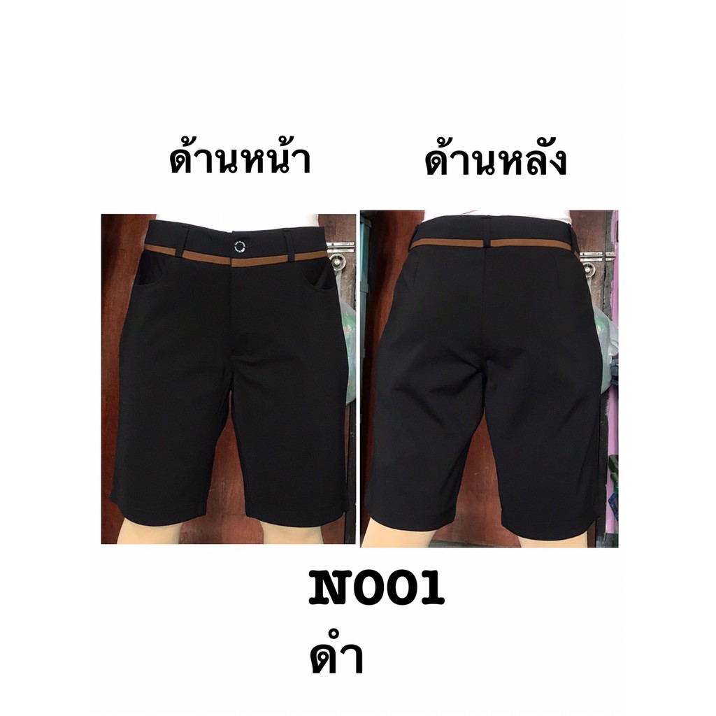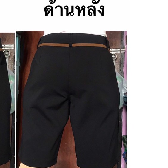 กางเกงผู้หญิง 3ส่วน พอดีเข่า สีหน้า กระดุมหน้า ซิปหน้า สีดำ