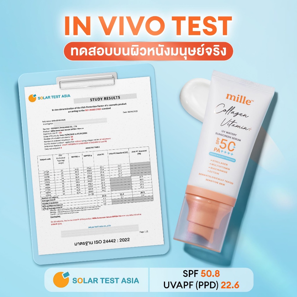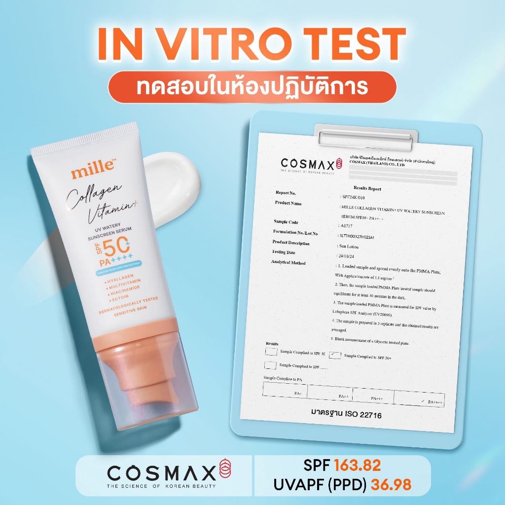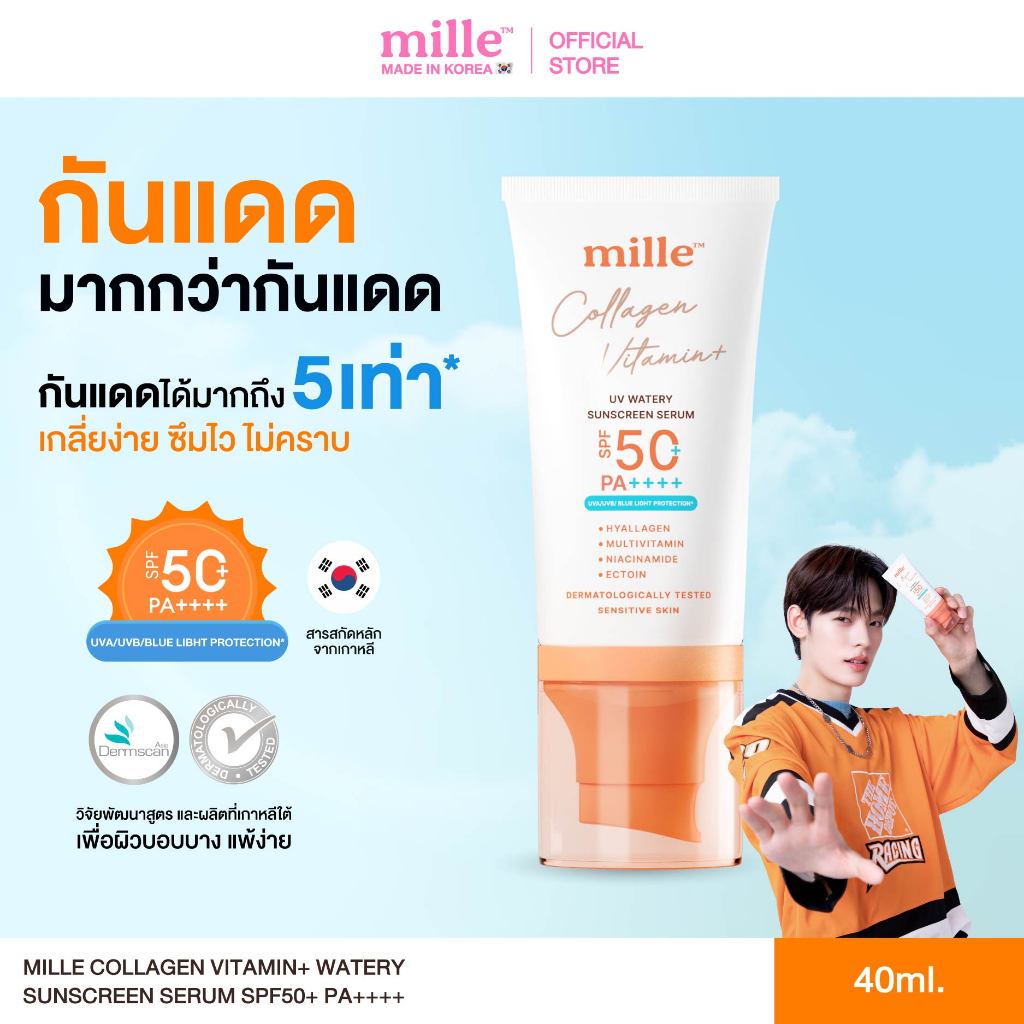 MILLE COLLAGEN VITAMIN+ UV WATERY SUNSCREEN SERUM SPF50+ PA++++ มิลเล่ กันแดดสูตรน้ำผสมคอลลาเจน 40ml.
