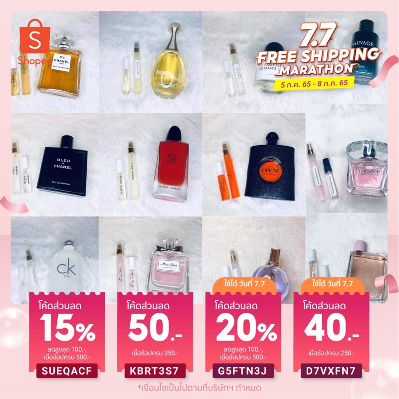 [ใส่โค้ด 2KCFRMU ช้อปขั้นต่ำ 300.- ลด 15%] น้ำหอมแบรนด์แท้แบ่งขาย 5ml. 10ml. แบ่งจากขวดแท้ มีให้เลือกมากกว่า 30 กลิ่น