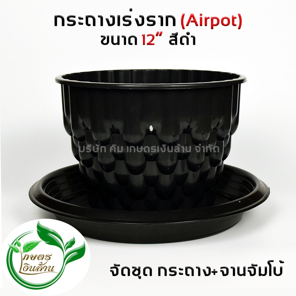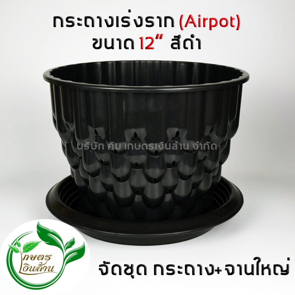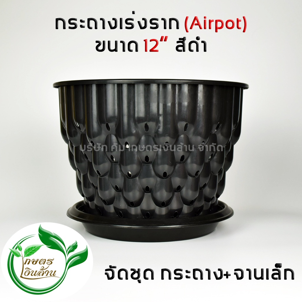 [โค๊ดส่วนลด 60 บาท]Airpot กระถางปลูกสายเขียว ขนาด 12นิ้ว พร้อมจานรอง เกษตรเงินล้าน