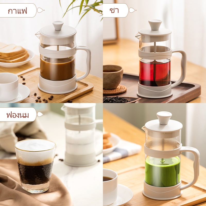 GIANXI หม้อชงกาแฟสไตล์ฝรั่งเศส แบบกด+ฟองนม | ชงชาเขียว/matcha ได้ | ของแท้ | แก้วทนความร้อน พร้อมฝาปิด[โปรสงกรานต์]