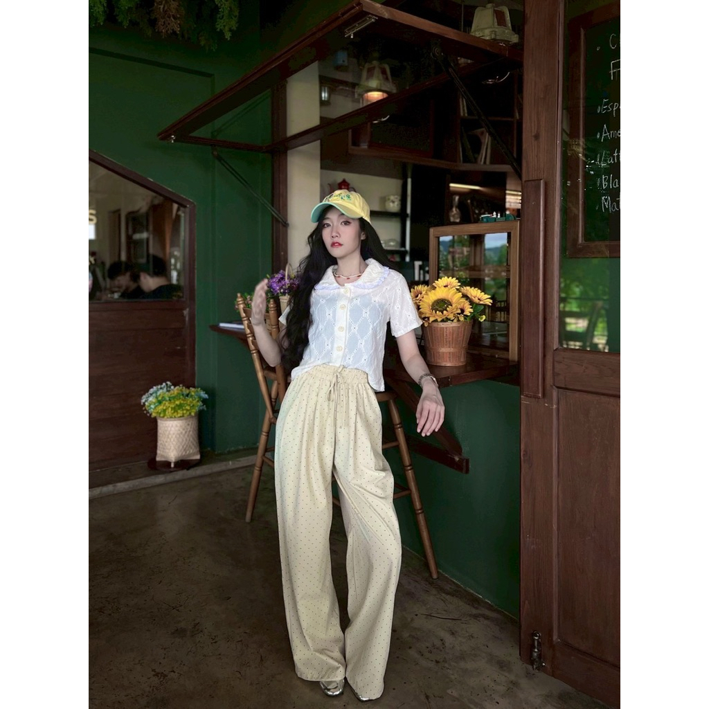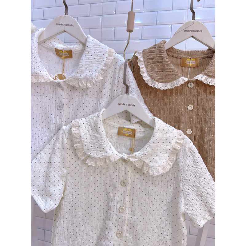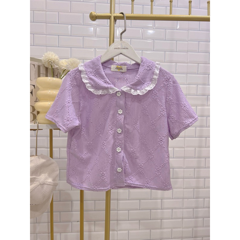 เสื้อแขนสั้นผ้ายืดสไตล์เกาหลี คอบัวแต่งลูกไม้น่ารักๆ J04