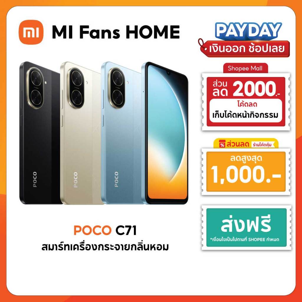(สินค้าพร้อมส่งทันที) Xiaomi POCO C71 โทรศัพท์มือถือ โปรเซสเซอร์ Octa-Core ทรงพลัง หน้าจอ 6.88 แบตเตอรี่ขนาดใหญ่ 5200mAh