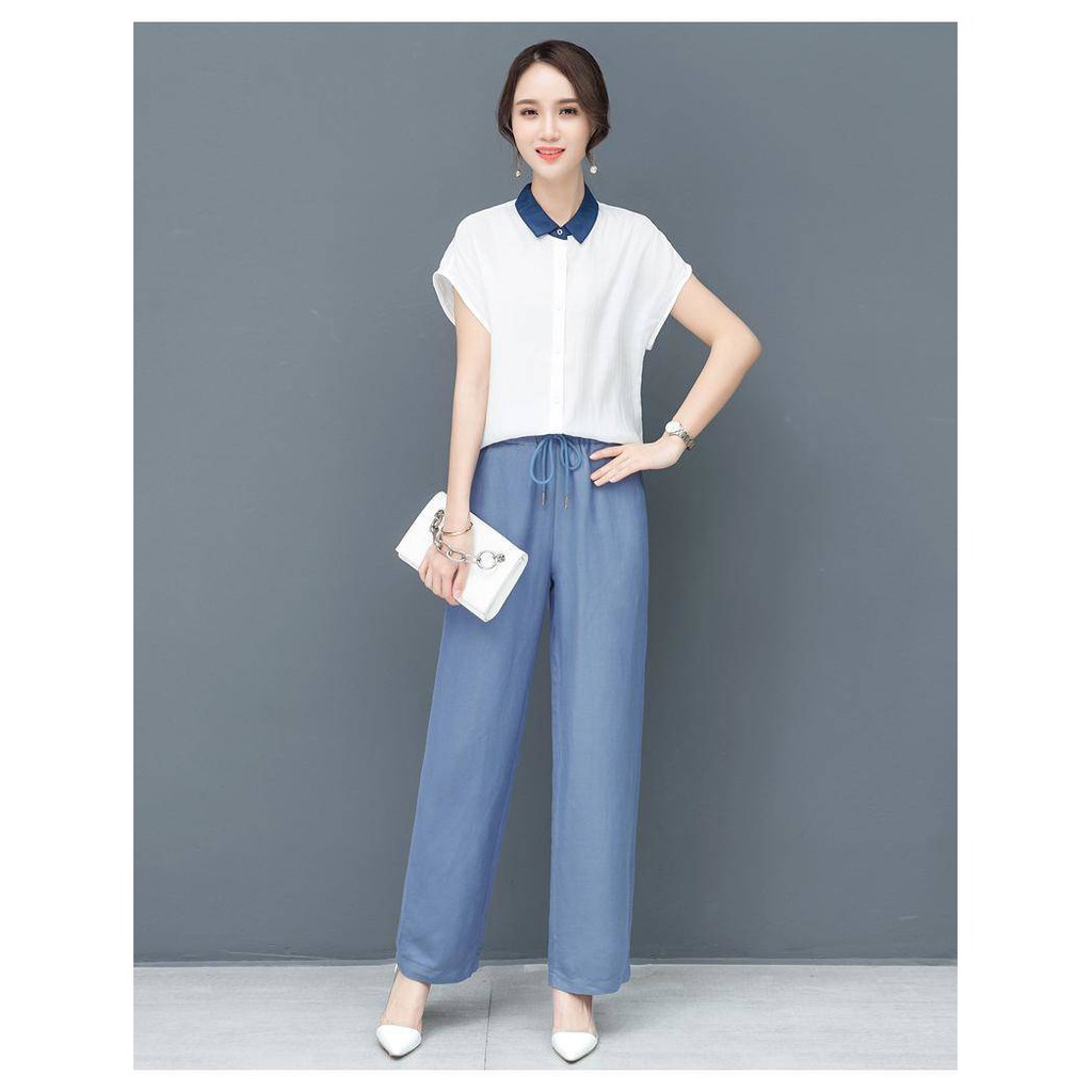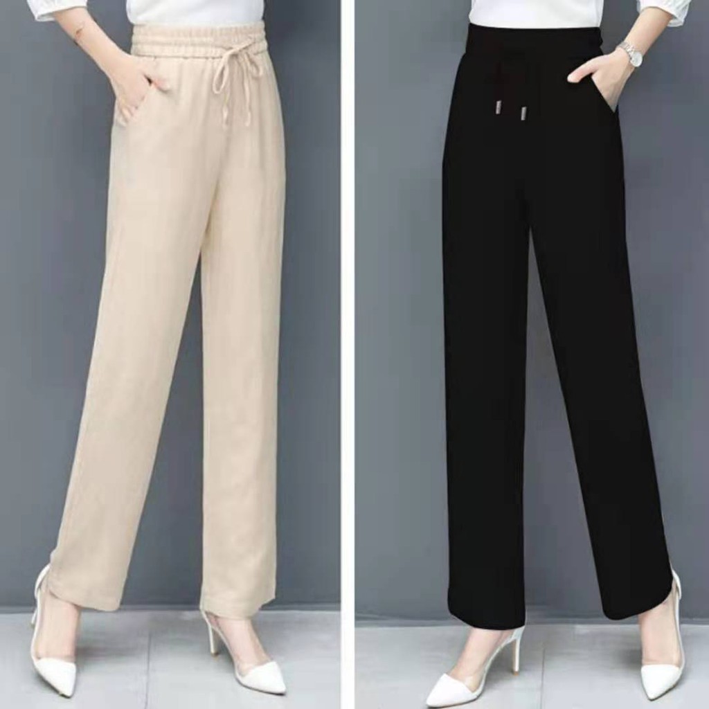 พร้อมส่งกางเกงขายาวผู้หญิงเอวยางยืดทรงหลวมแฟชั่นสไตล์เกาหลี