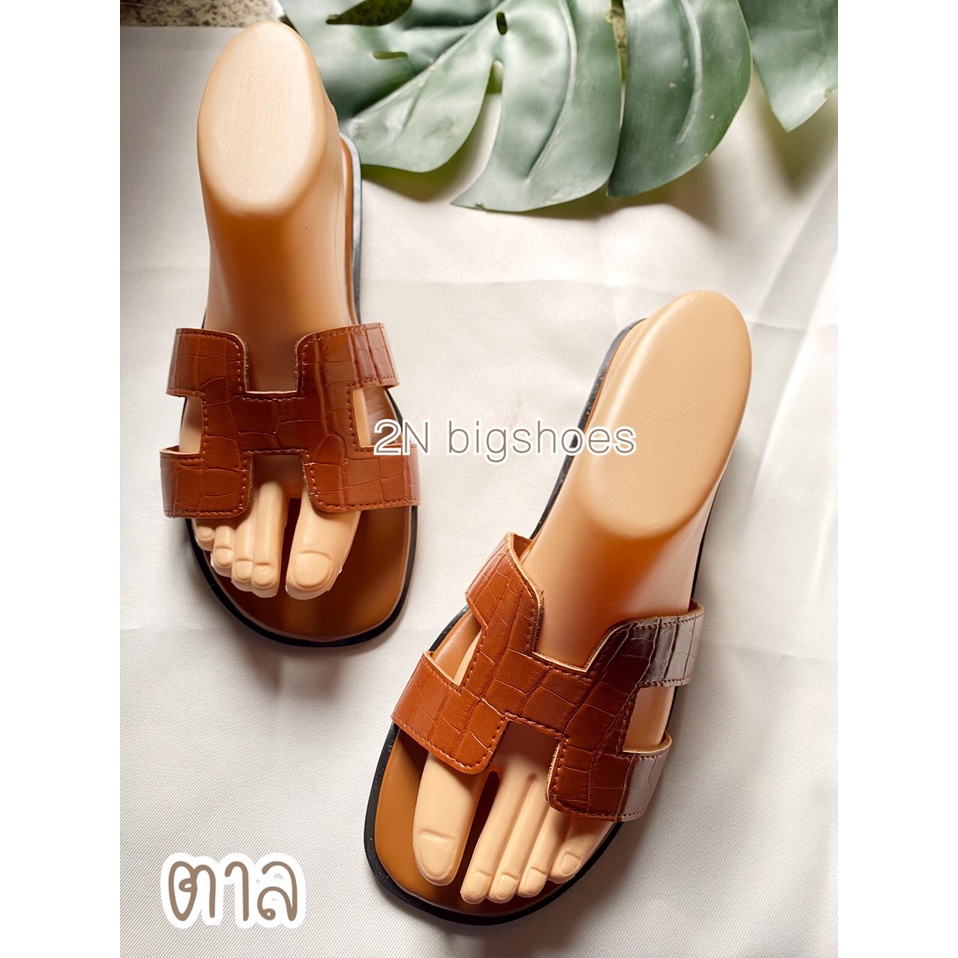 รองเท้าแตะไซส์ใหญ่ 41-45 หน้า H ลายหนังแท้