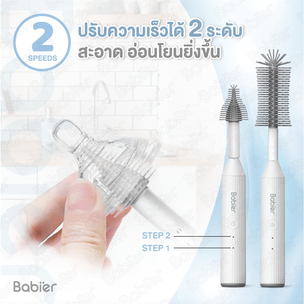 🇹🇭 [ทักรับโค้ด300.-] 🔥Babier✨แปรงล้างขวดนมไฟฟ้า 2 ระดับ (หัวแปรงซิลิโคน) ⭐ รุ่น BR-3200