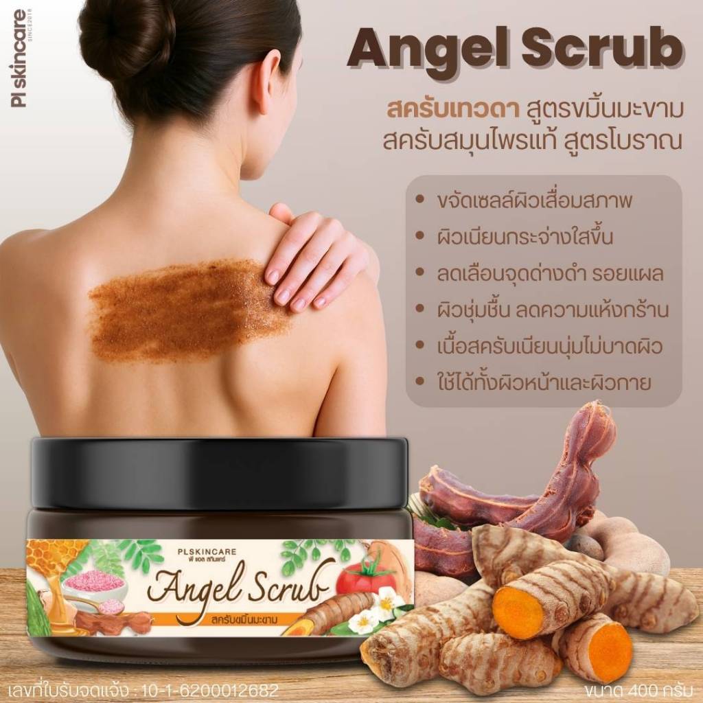 สครับสมุนไพร สครับขมิ้นมะขาม สครับขัดผิว กระปุกใหญ่400กรัม ผลัดเซลล์ผิวให้เรียบเนียน ขาวกระจ่างใส PL skincare