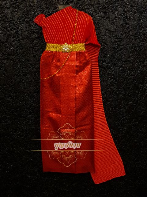 ชุดไทยแก้บน เจ้าแม่ + เครื่องประดับเข็มขัดทอง (แถมไม้แขวน)
