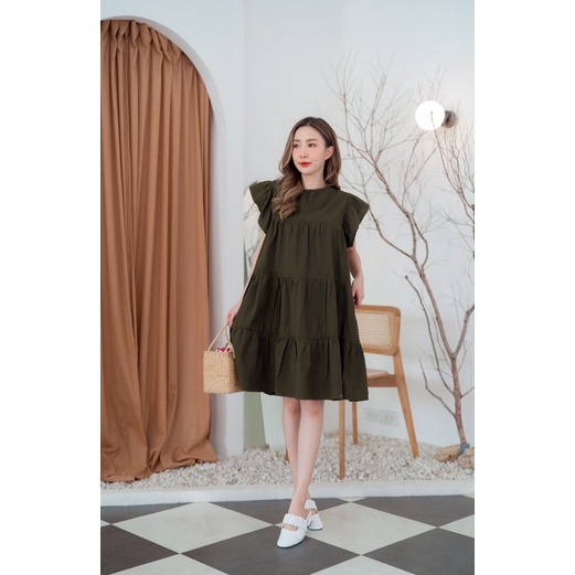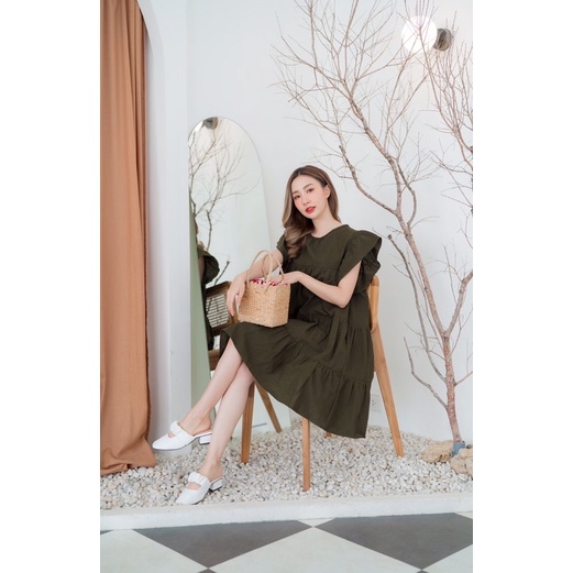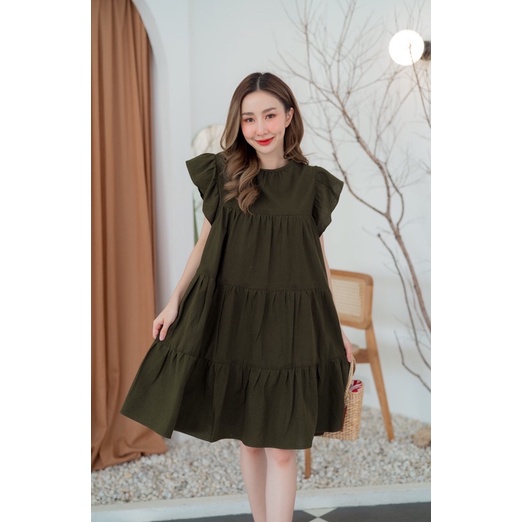 เดรสคอมกลมแขนระบาย แต่งระบายรอบตัว งานคุณหนู ผู้ดีมากกก ใส่ไปออกงานยังได้ ใส่ชิวล์ๆยิ่งดี ใส่ไปทำงานเพื่อนยังต้องทัก