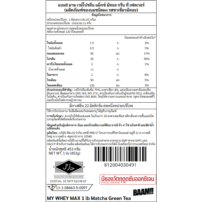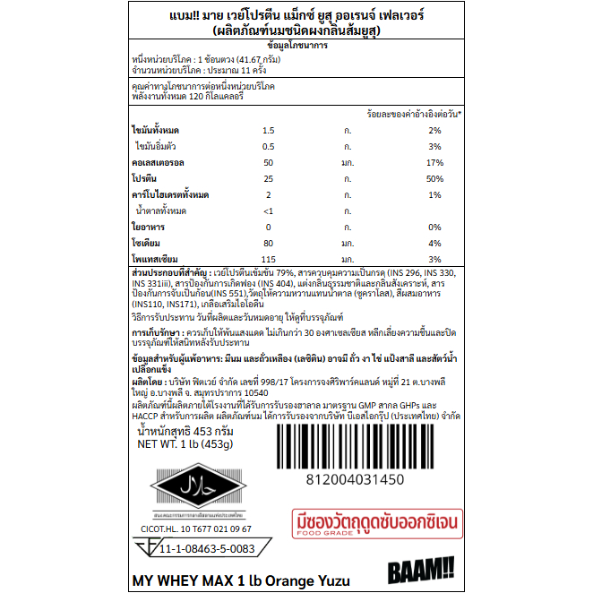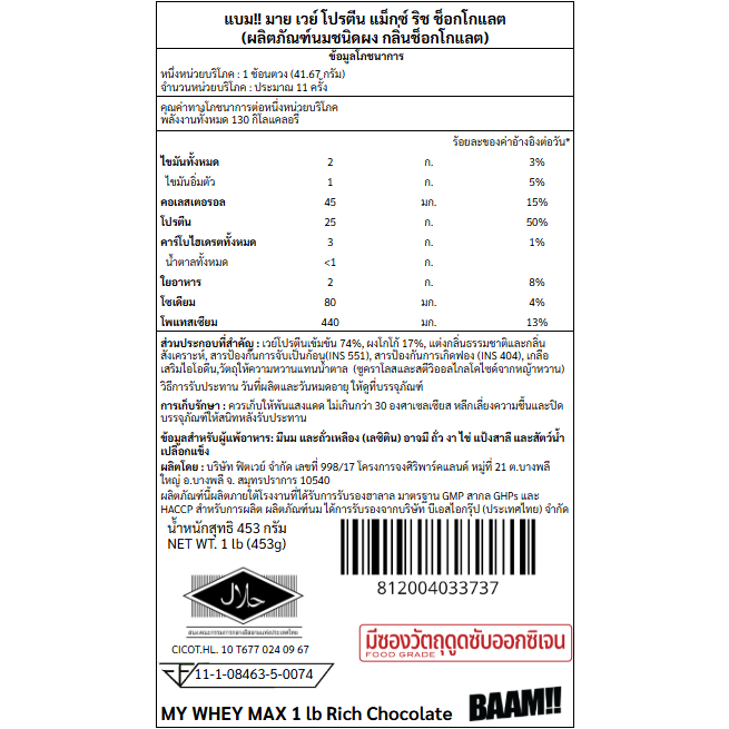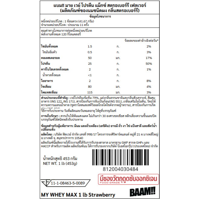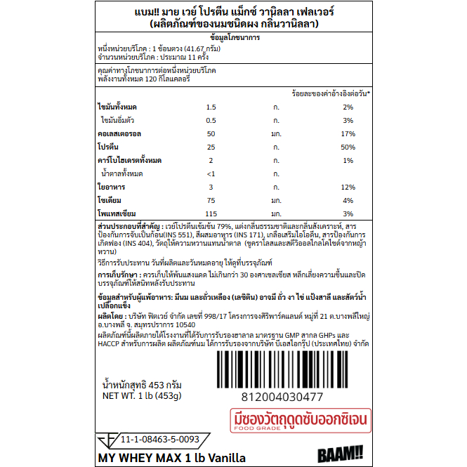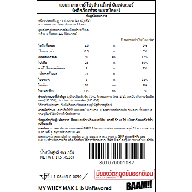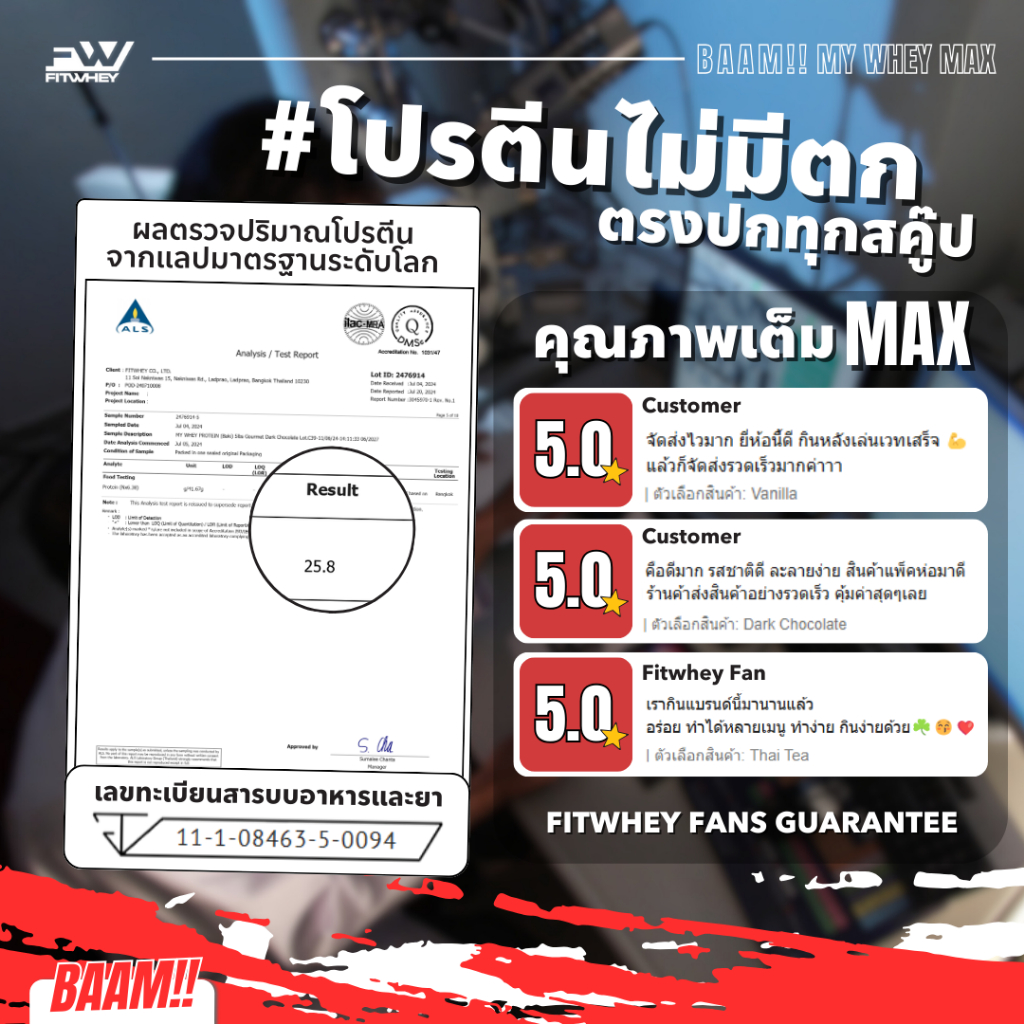 BAAM MY WHEY PROTEIN MAX (1 LB) | โปรตีนคุณภาพดีในราคาที่คุ้ มค่า | FITWHEY