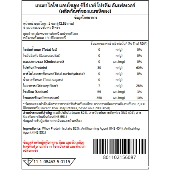 BAAM ISO ABSOLUTE ZERO (5 SACHETS) | เวย์โปรตีนไอโซเลท พกพาง่าย I FITWHEY