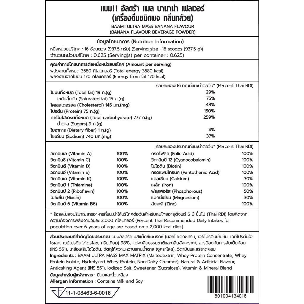 [ชุดโปรโมชั่นเซ็ต] BAAM ULTRA MASS SET (20 LB) | แหล่งพลังงานสารอาหารและวิตามิน