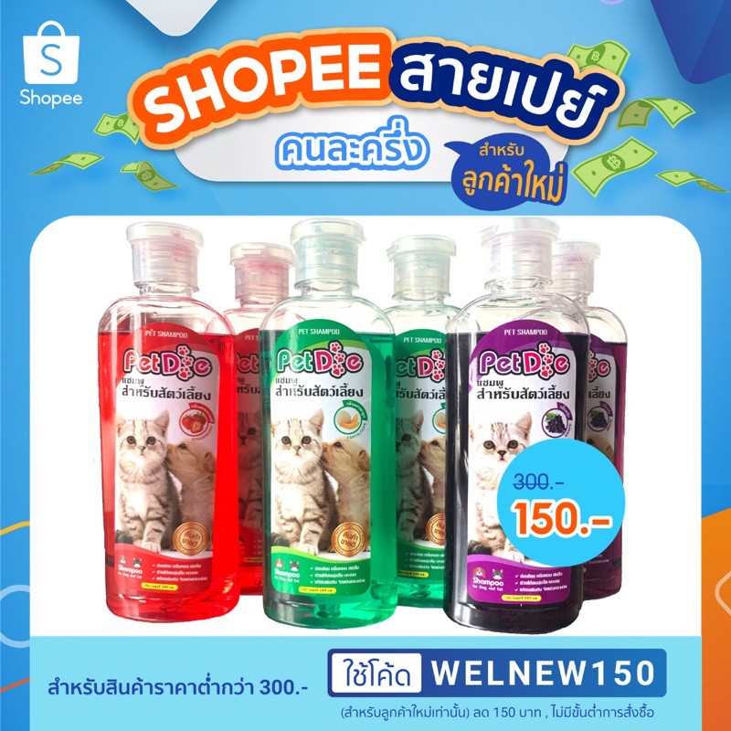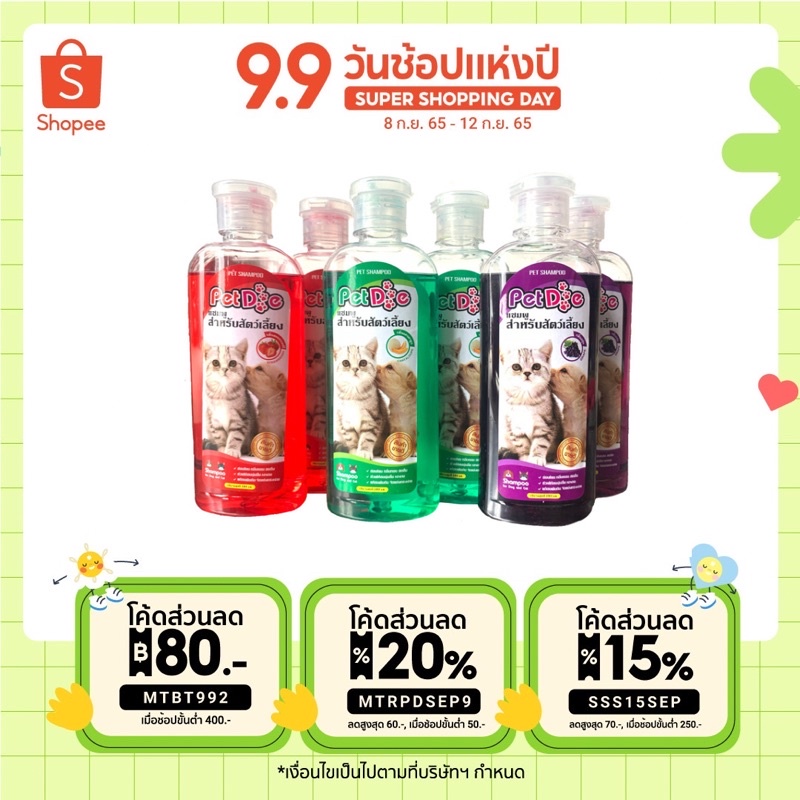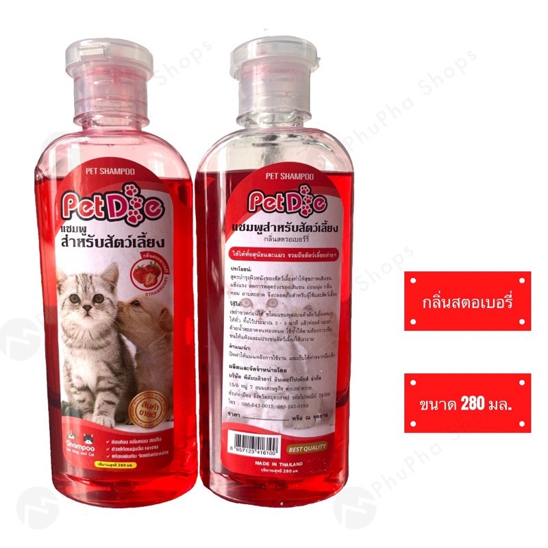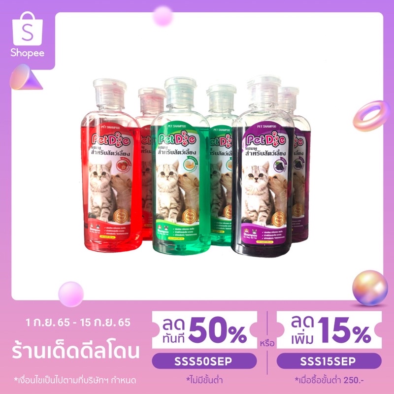 สบู่อาบน้ำสุนัข สบู่อาบน้ำแมว Pet Shampoo กลิ่นสตอเบอรี่,กลิ่นแคนตาลูป,กลิ่นองุ่น ขนาด 280 มล.