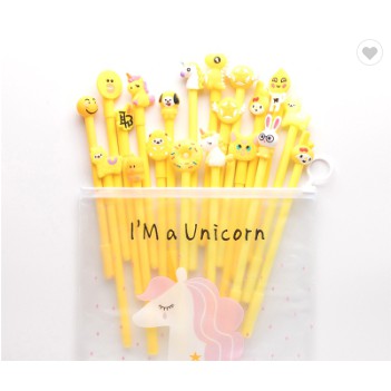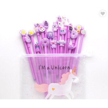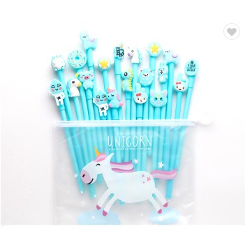 [หมึกน้ำเงิน] ปากกา หัวการ์ตูน แถมฟรี❗️ กระเป๋าซิป น่ารักทุกสี หมึกน้ำเงิน (กระเป๋าคละลาย)