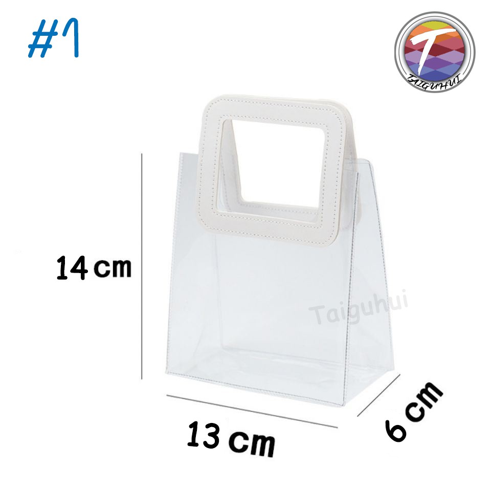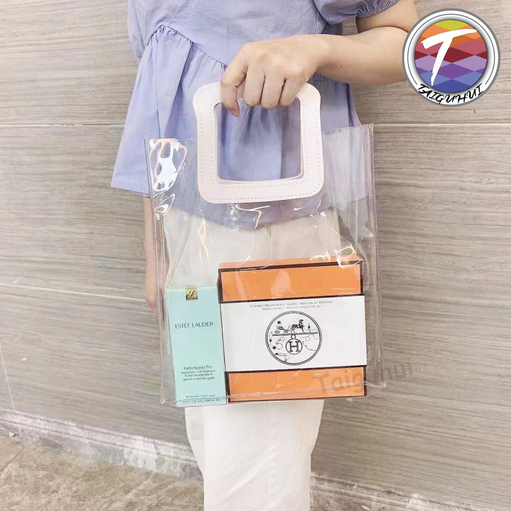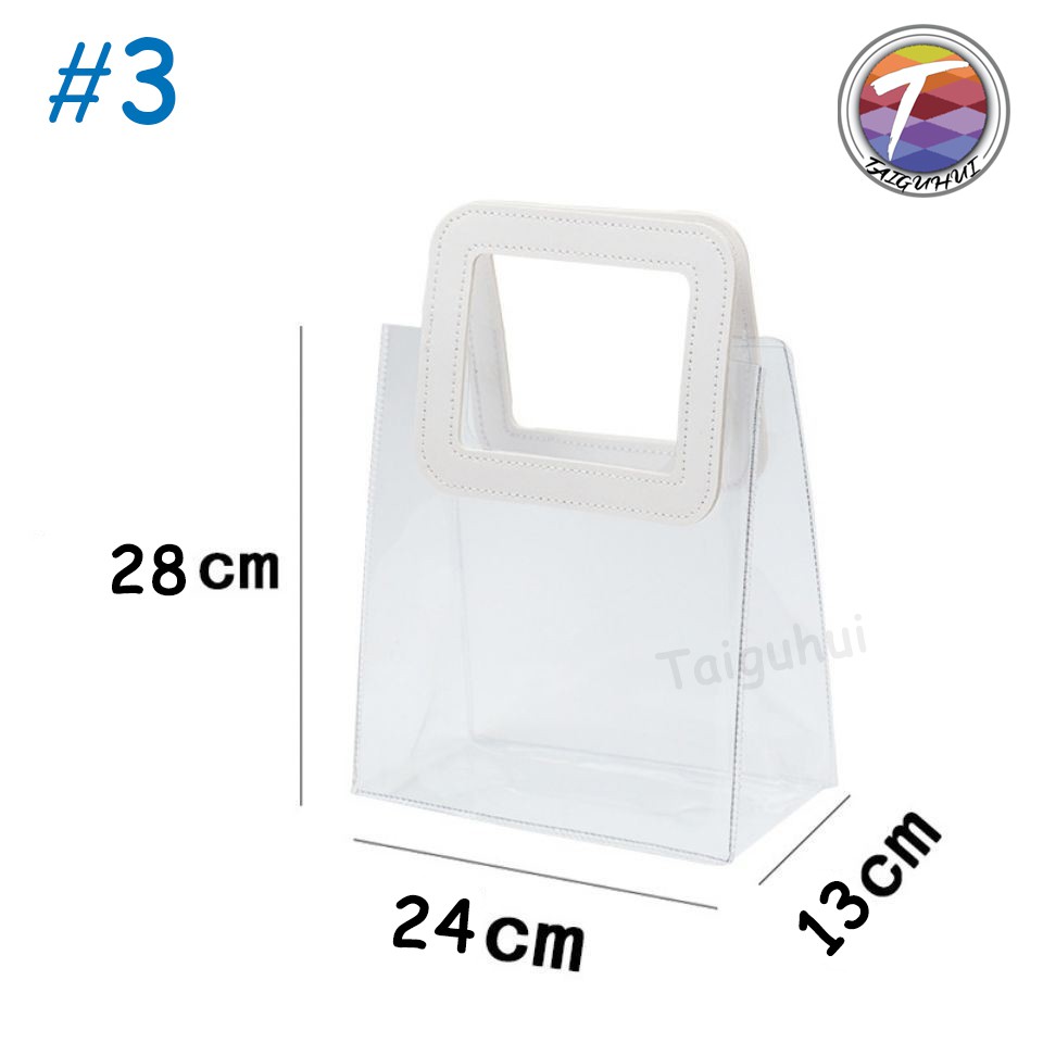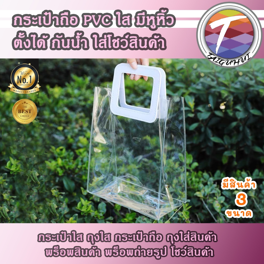 กระเป๋า PVC ใส มีหูหิ้ว สีขาว ตั้งได้ กันน้ำ ถุงใส่สินค้า กระเป๋าใส แฟชั่น พร็อพถ่ายรูป