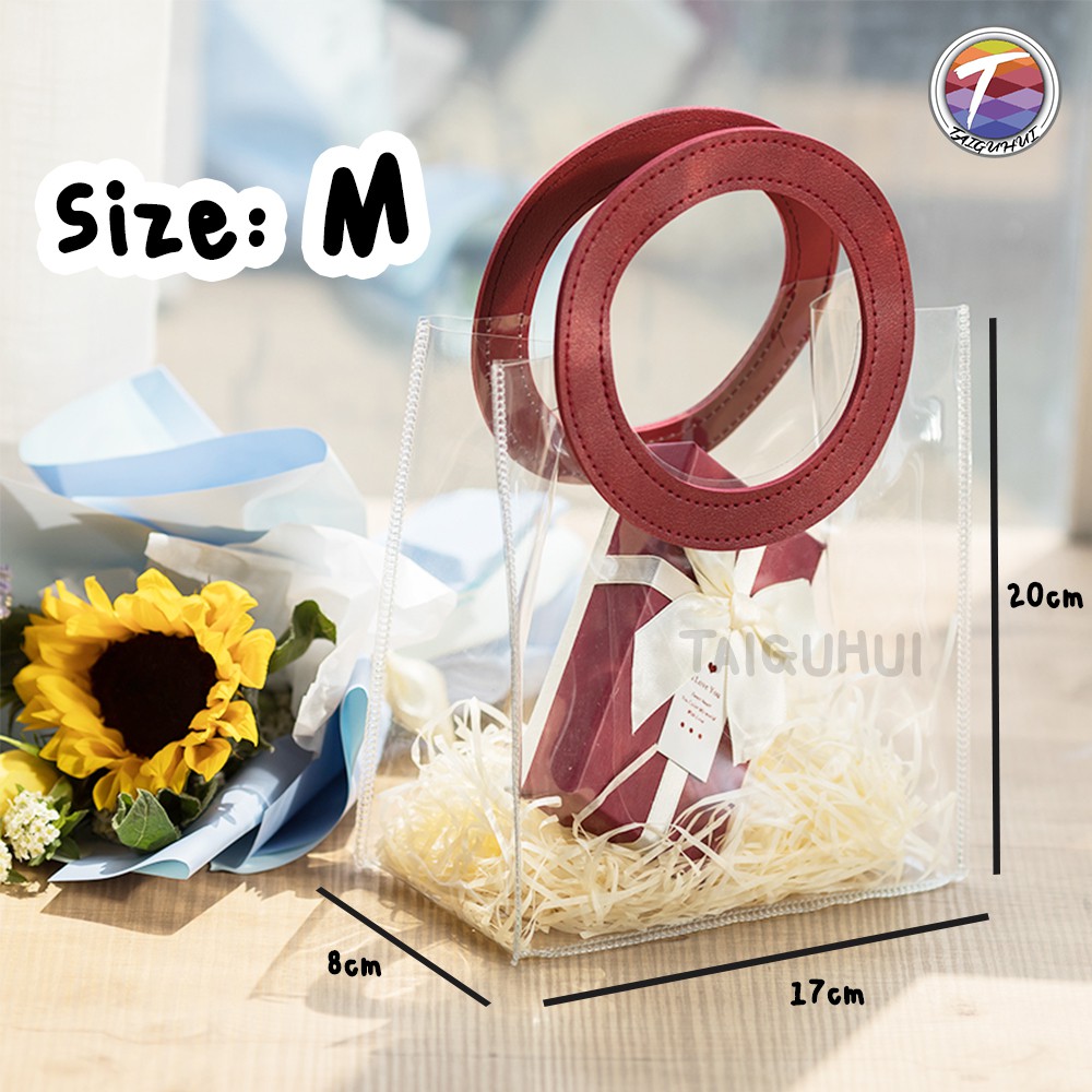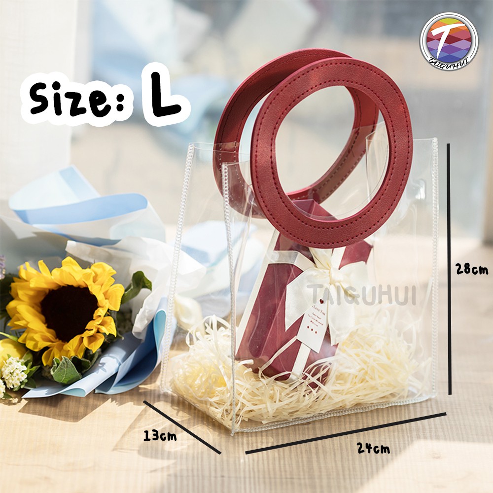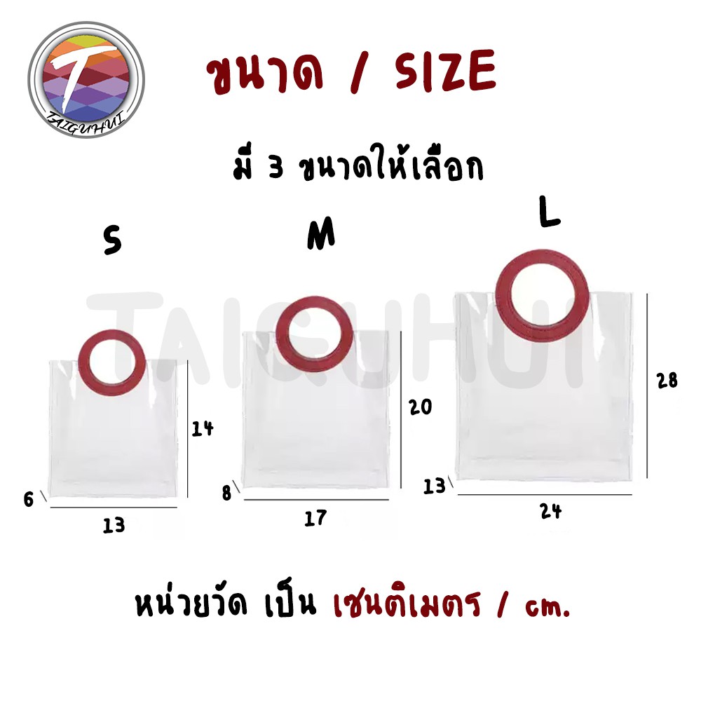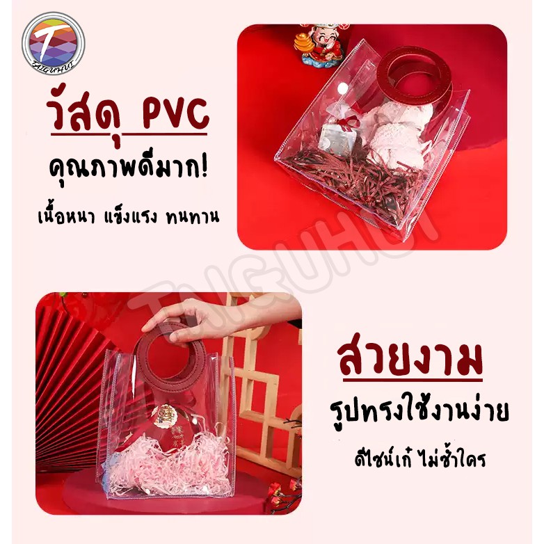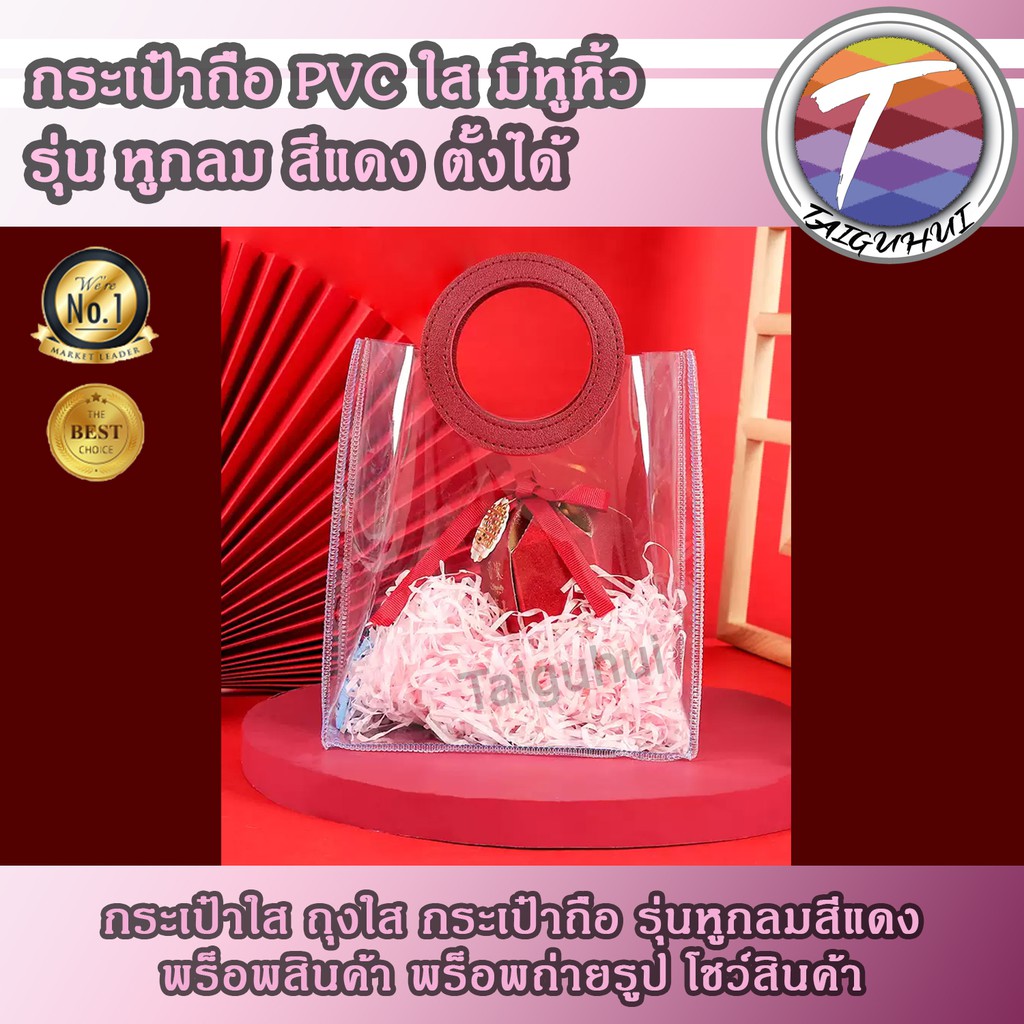 กระเป๋า PVC ใส มีหูหิ้ว หูกลม แดง ตั้งได้ กันน้ำ กระเป๋าใส กระเป๋าถือ แฟชั่น โชว์สินค้า ถุงใส่สินค้า ถ่ายรูป