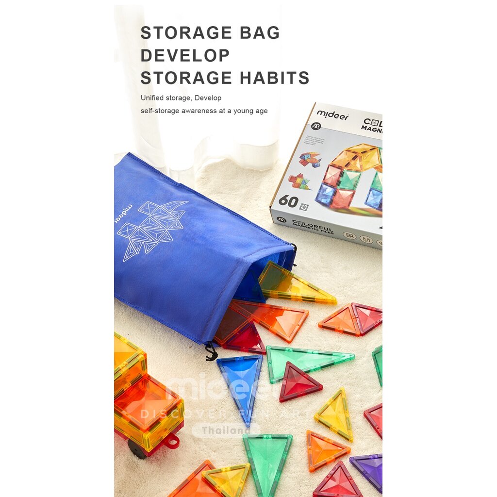 Mideer มิเดียร์ Colorful Magnetic Tiles แม่เหล็กตัวต่อสีรุ้ง MD1141-MD1142