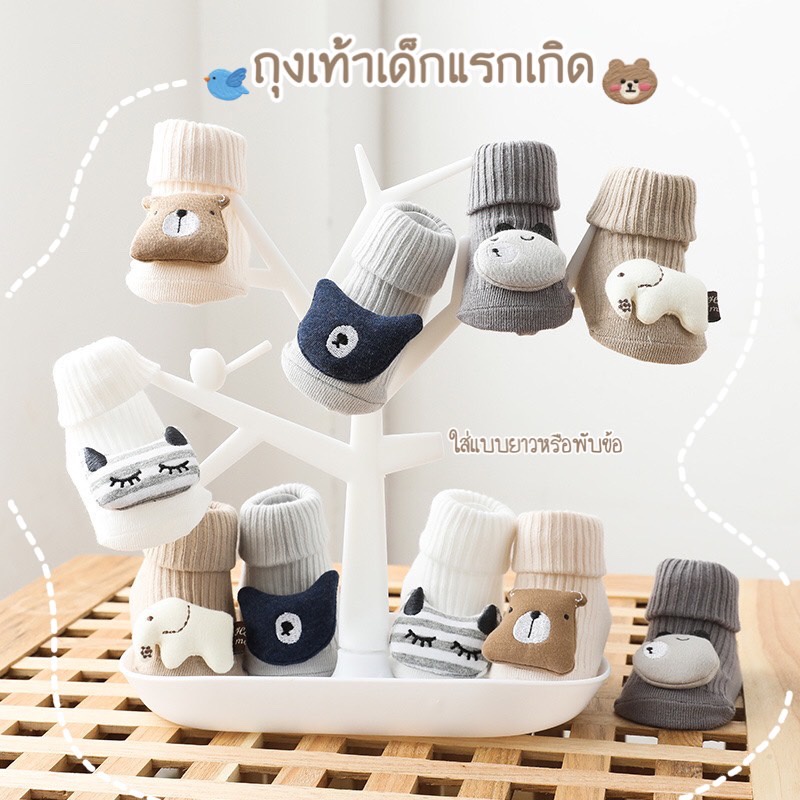 ถุงเท้าเด็กอ่อนแรกเกิด (0-6 เดือน) แบบยาวติดตุ๊กตา 3D สามารถใส่ได้ทั้งยาวและพับข้อน่ารักมากค่ะ