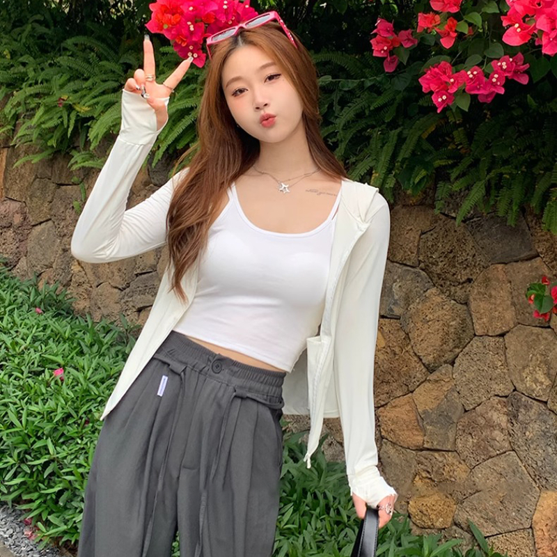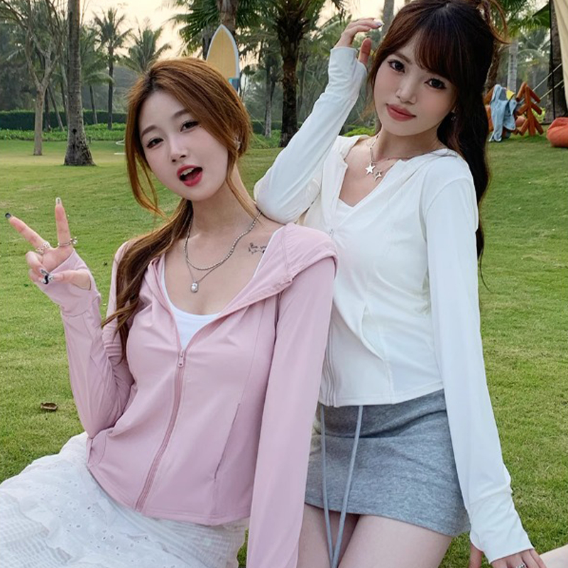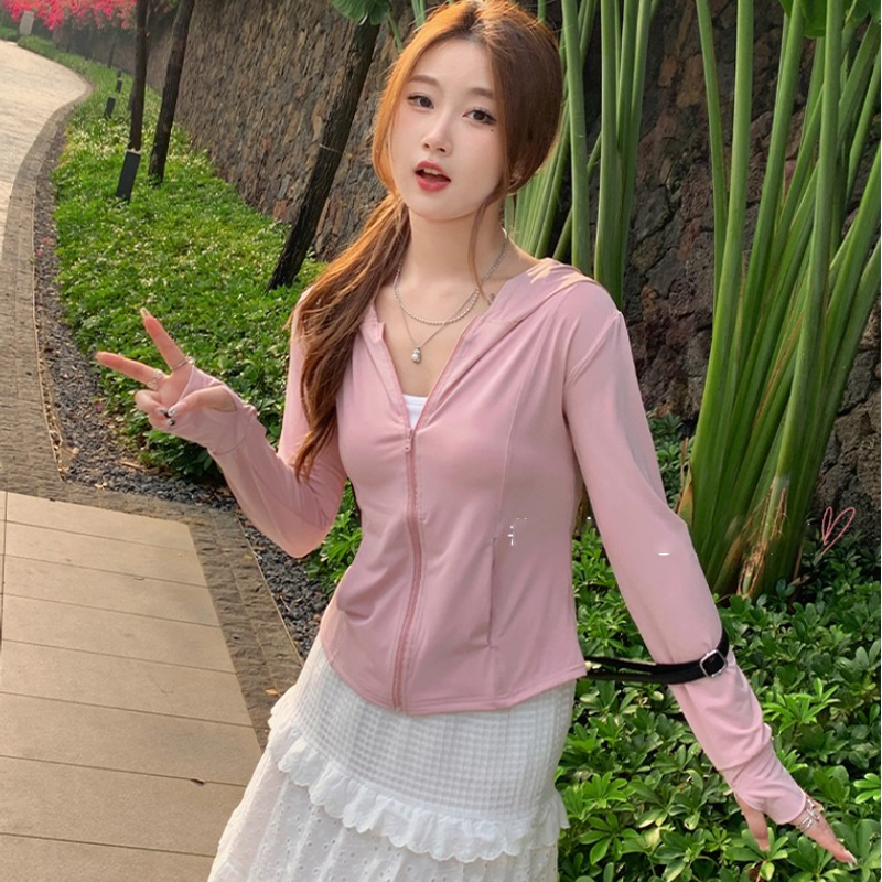 🌈beachgirl🌈เสื้อกันแดดผู้หญิง สีพื้นเสื้อฮู้ด กันยูวี upf50 แขนยาว ผ้าไหมเย็นสบาย ระบายอากาศได้ดี ส่งจากไทย