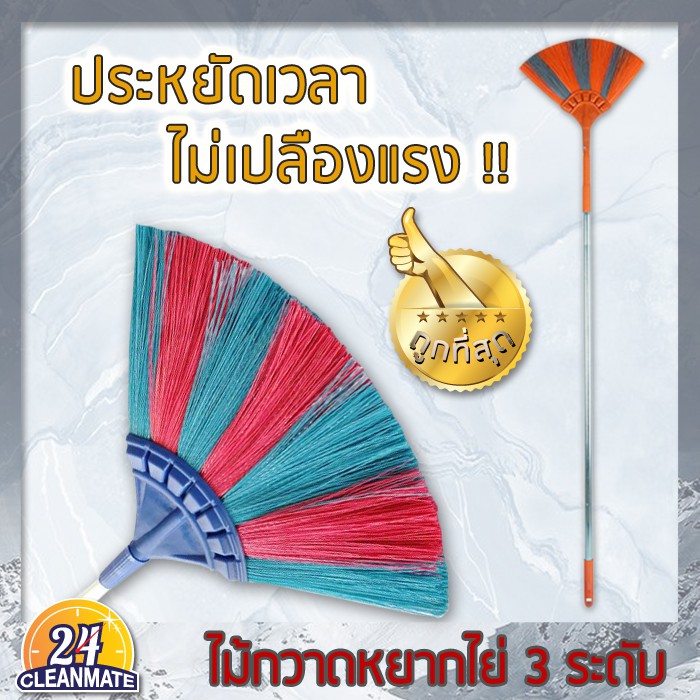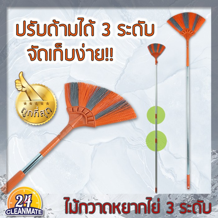 Cleanmate24 ไม้กวาดหยากไย่ ปรับได้ 3 ระดับ (จัดส่งคละสี)