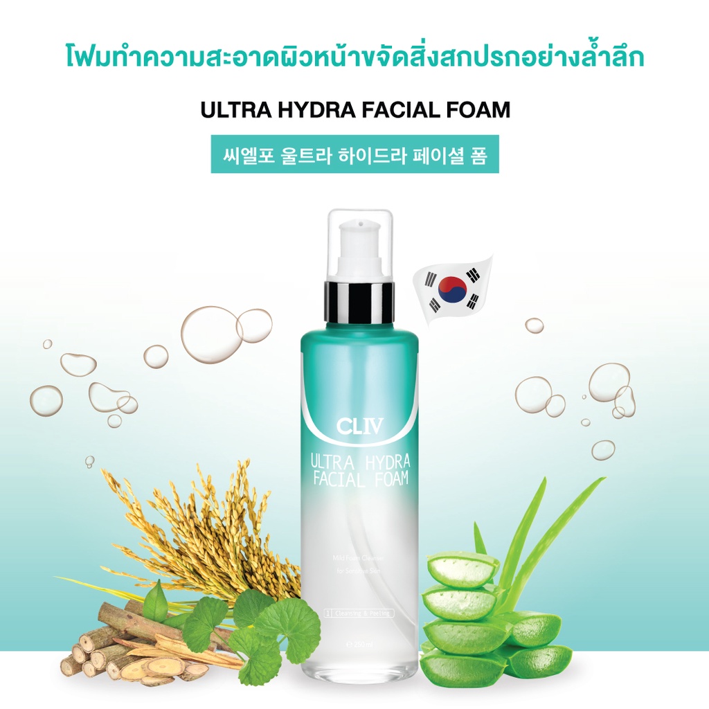 (ส่งฟรี) CLIV Ultra Hydra Facial Foam 250 ml. โฟมล้างหน้าเกาหลี อ่อนโยนต่อผิว